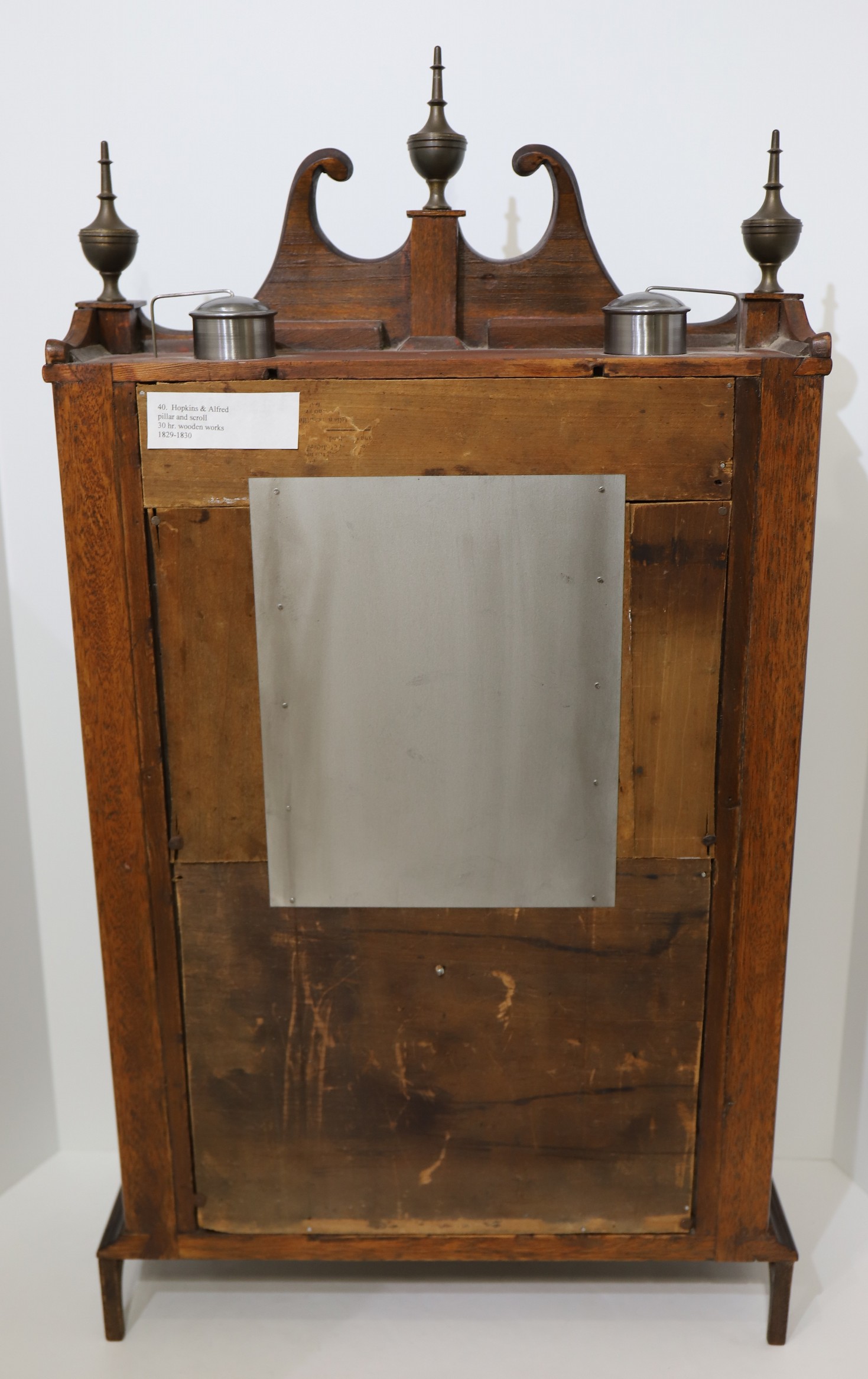 pillar & scroll, 1831-1839. This clock has had some restoration – I think the finish was stripped and the case restained