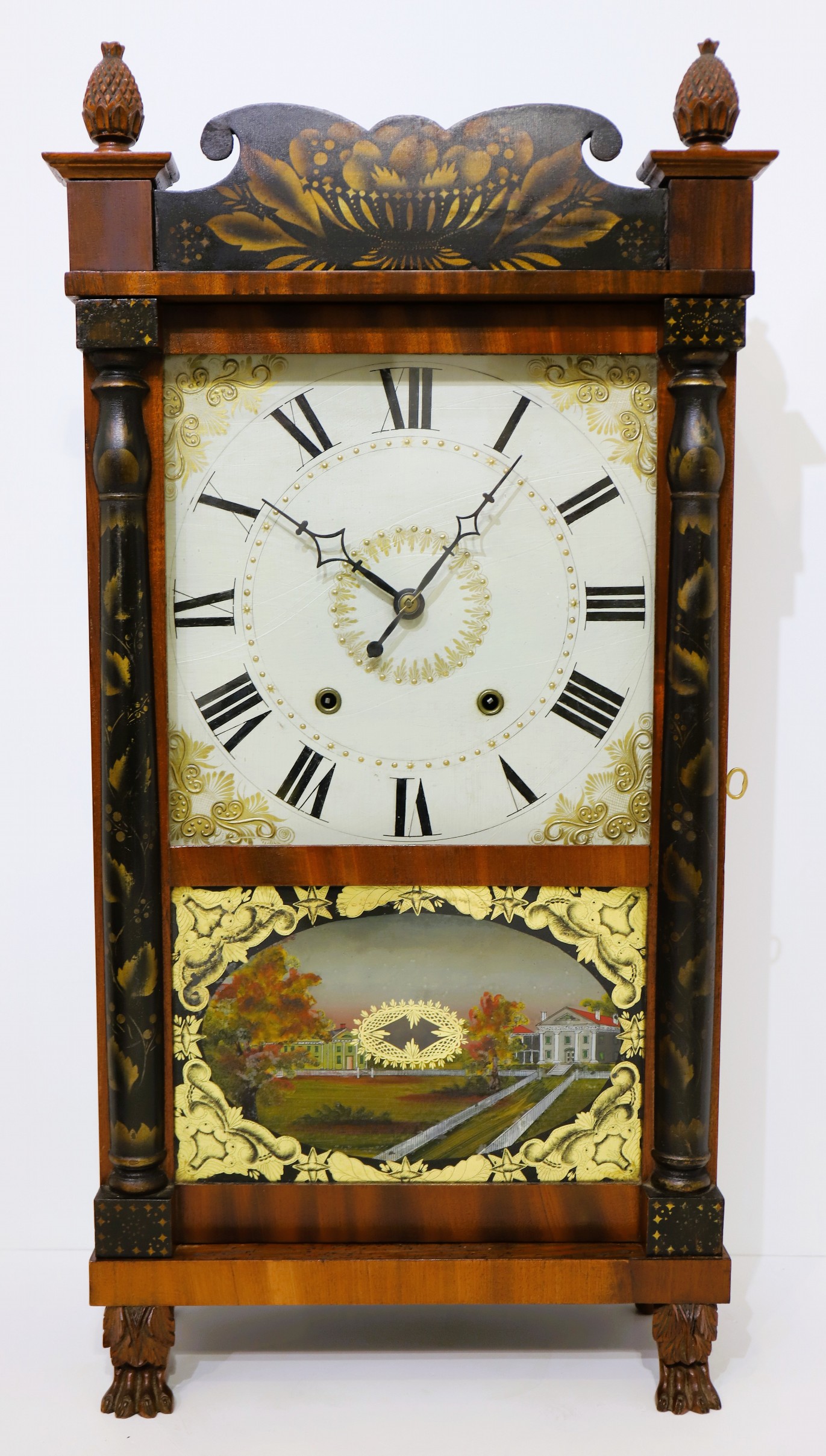 backboard has been replaced. AAC sold this clock in 2023, before the tablet had been restored, for $500. $350-$500.