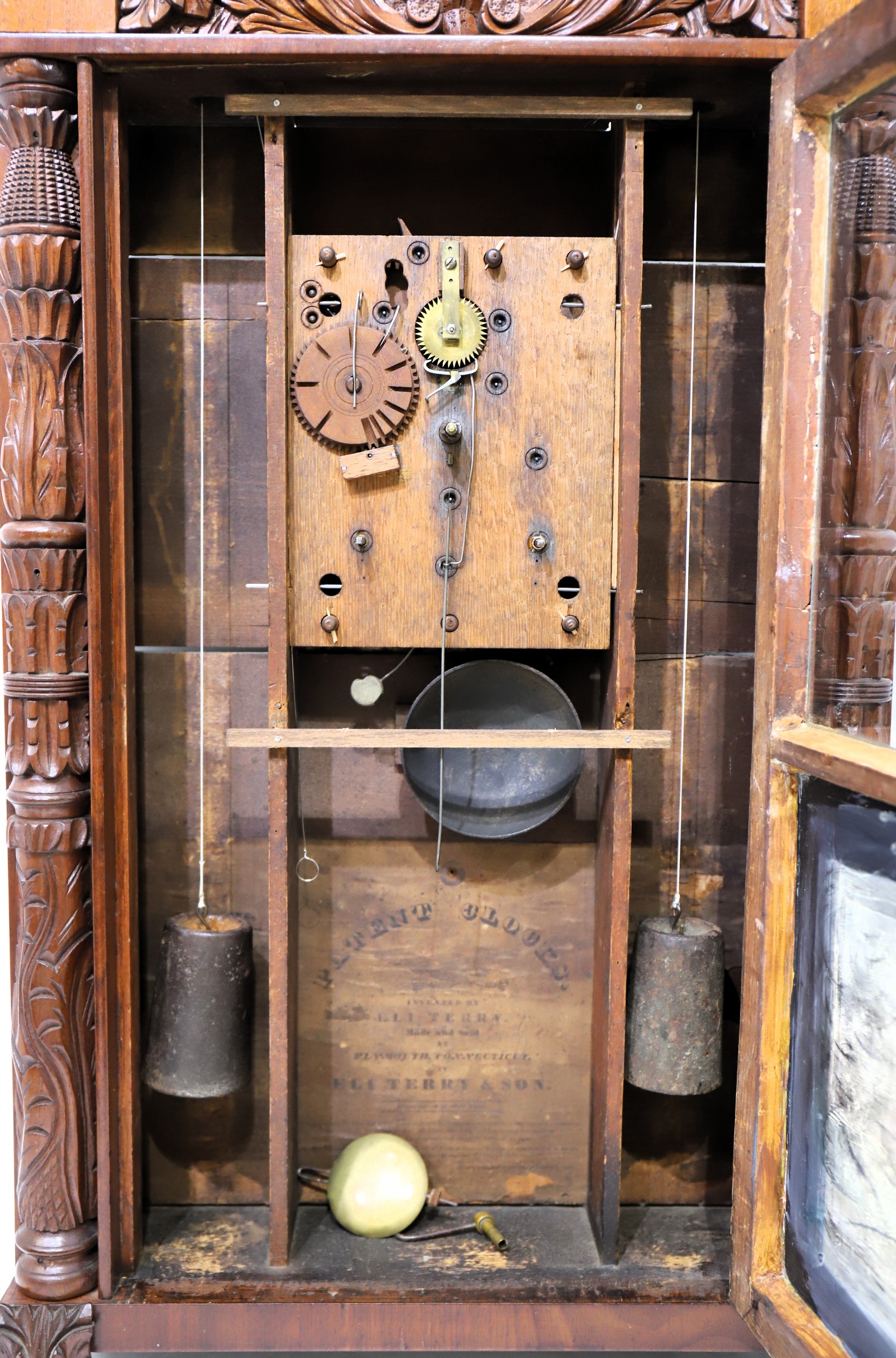 Son carved column & splat shelf clock, 1831-1833. This was a partnership between Eli and his second son Henry, and