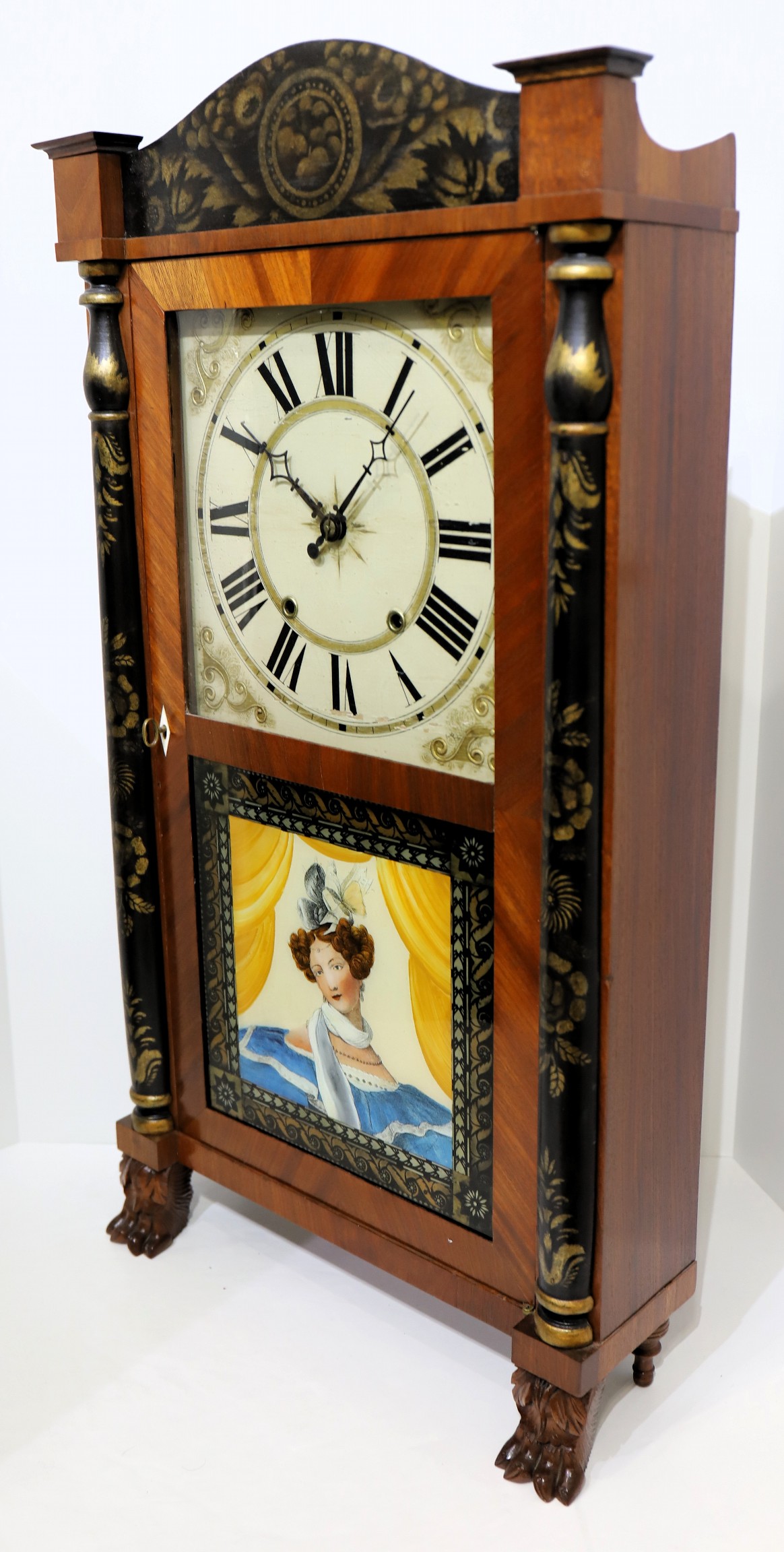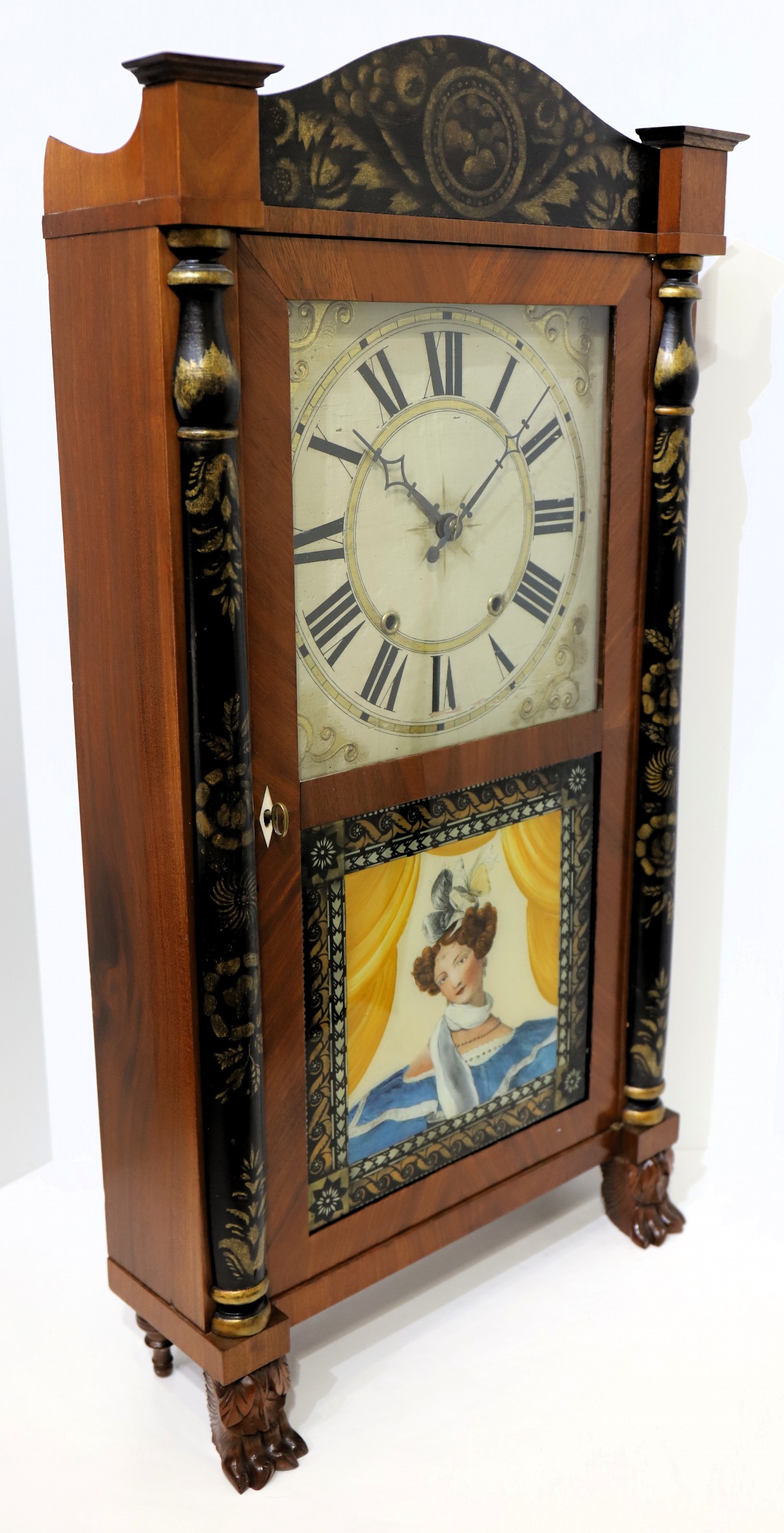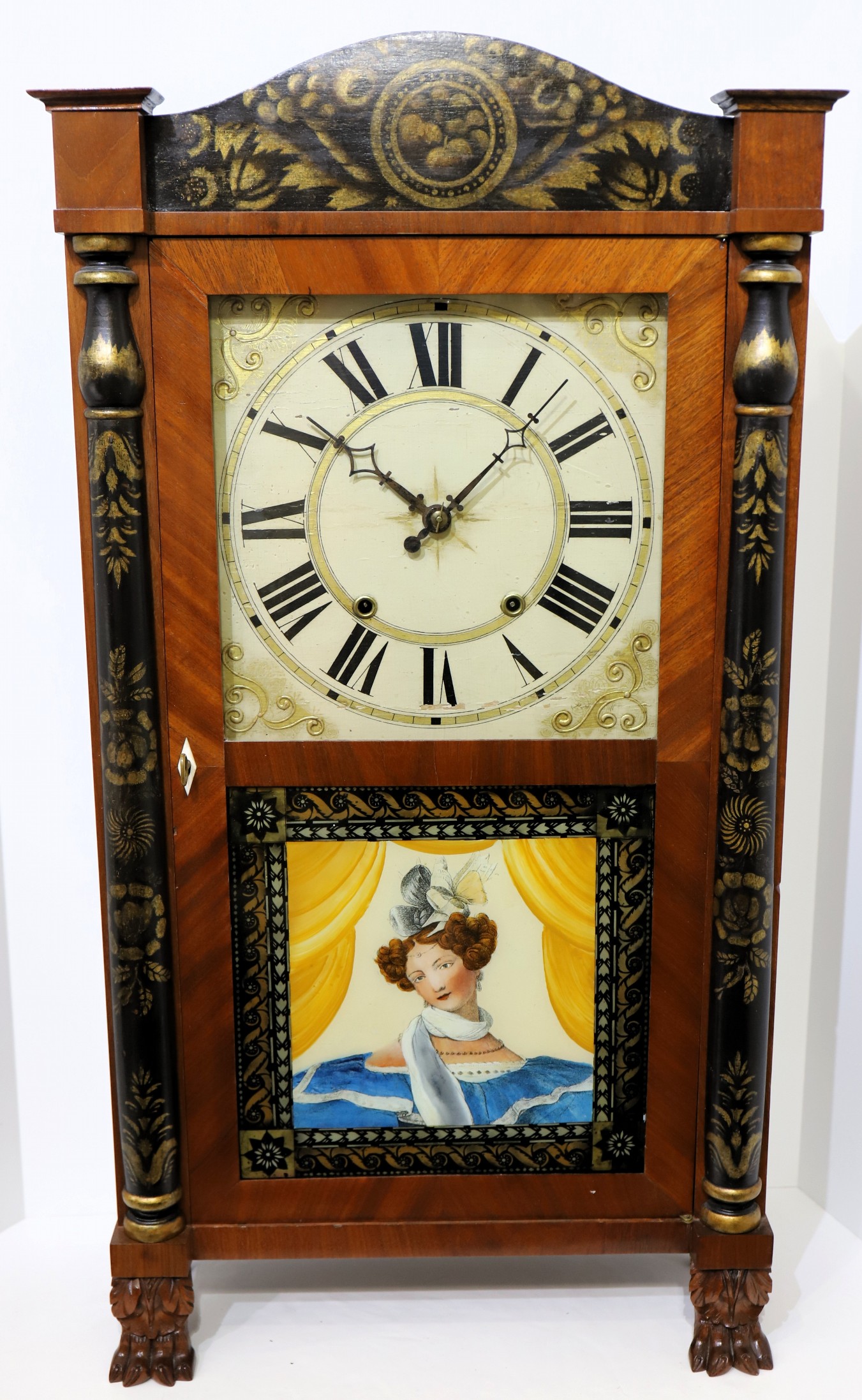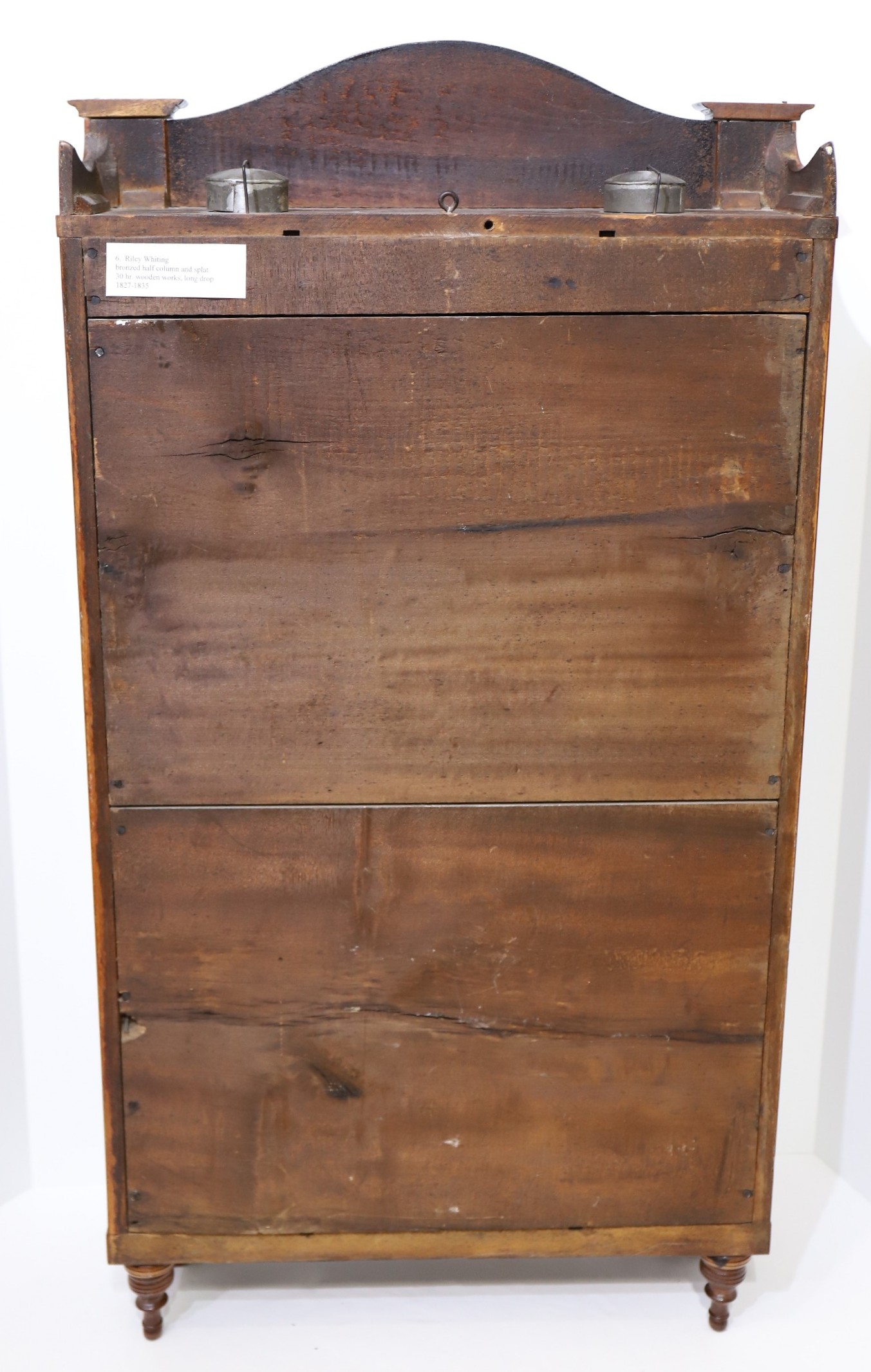 column & splat, 1828-1835. A 32.5-inch case with a clean finish over good mahogany veneer. The stenciling on