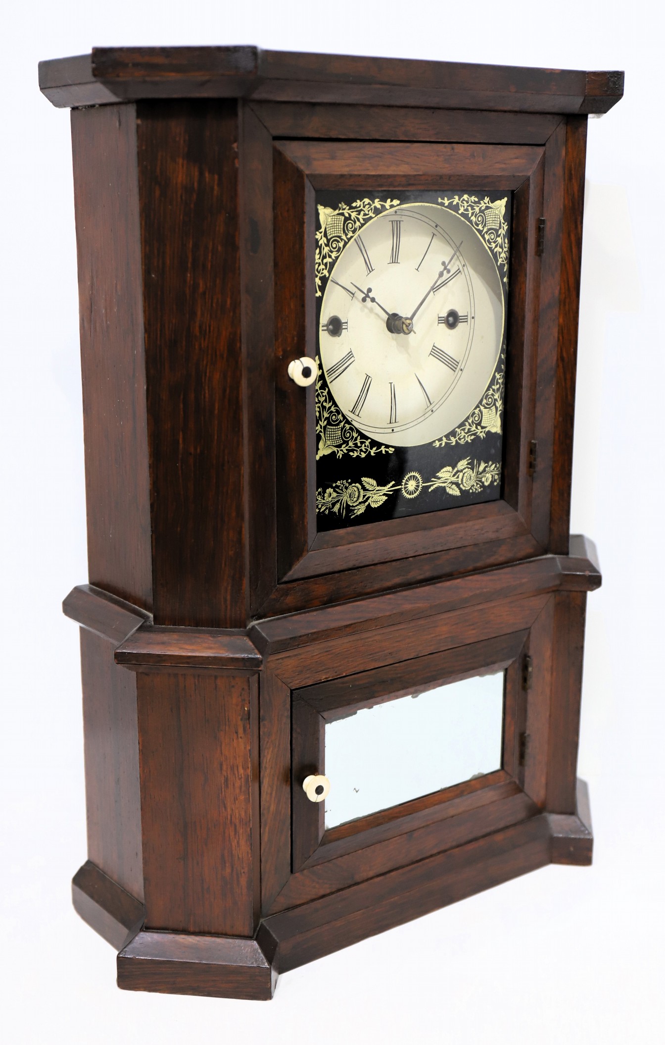 rebacked; the lower mirror also appears to be period/original. The metal dial appears original, the hands are period. The