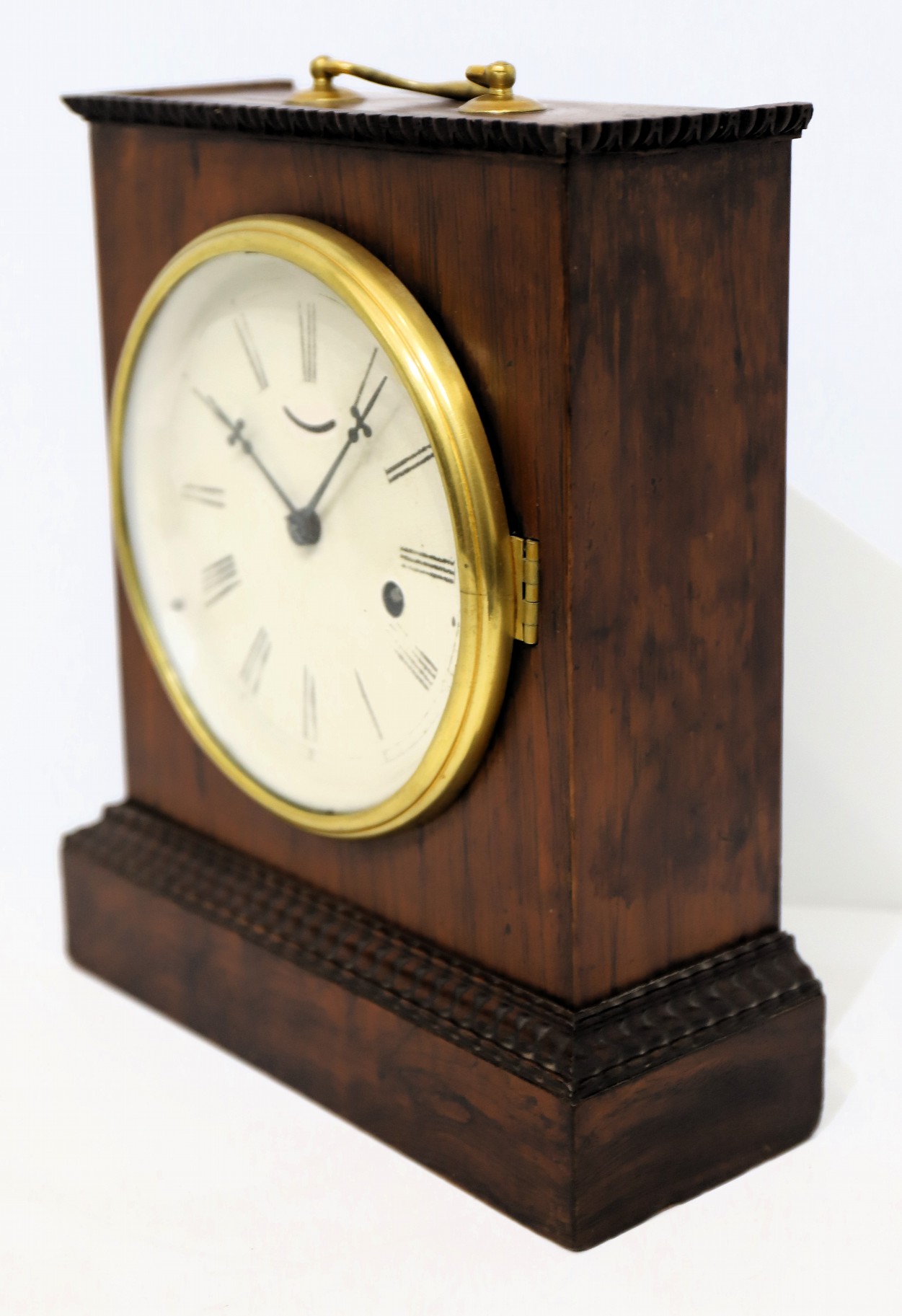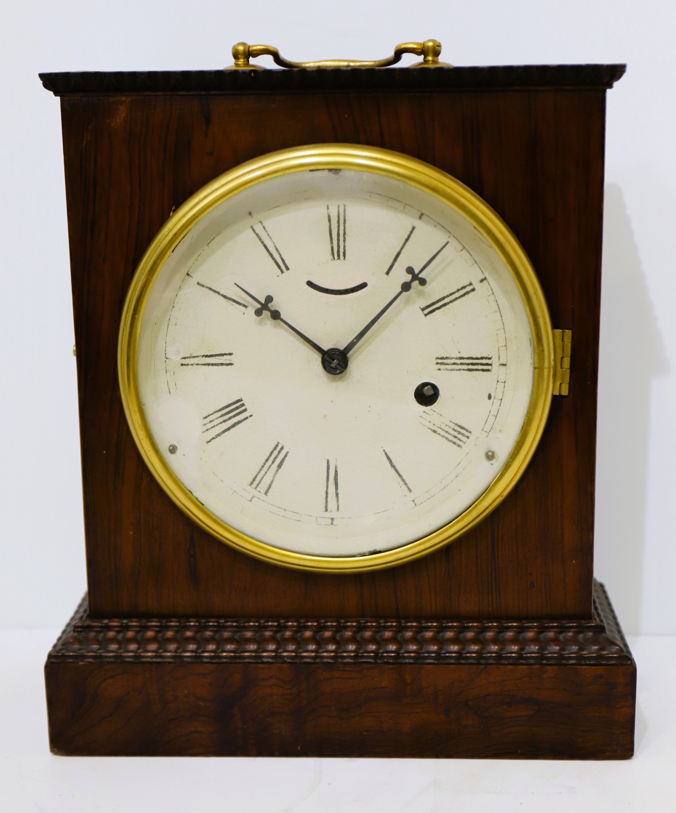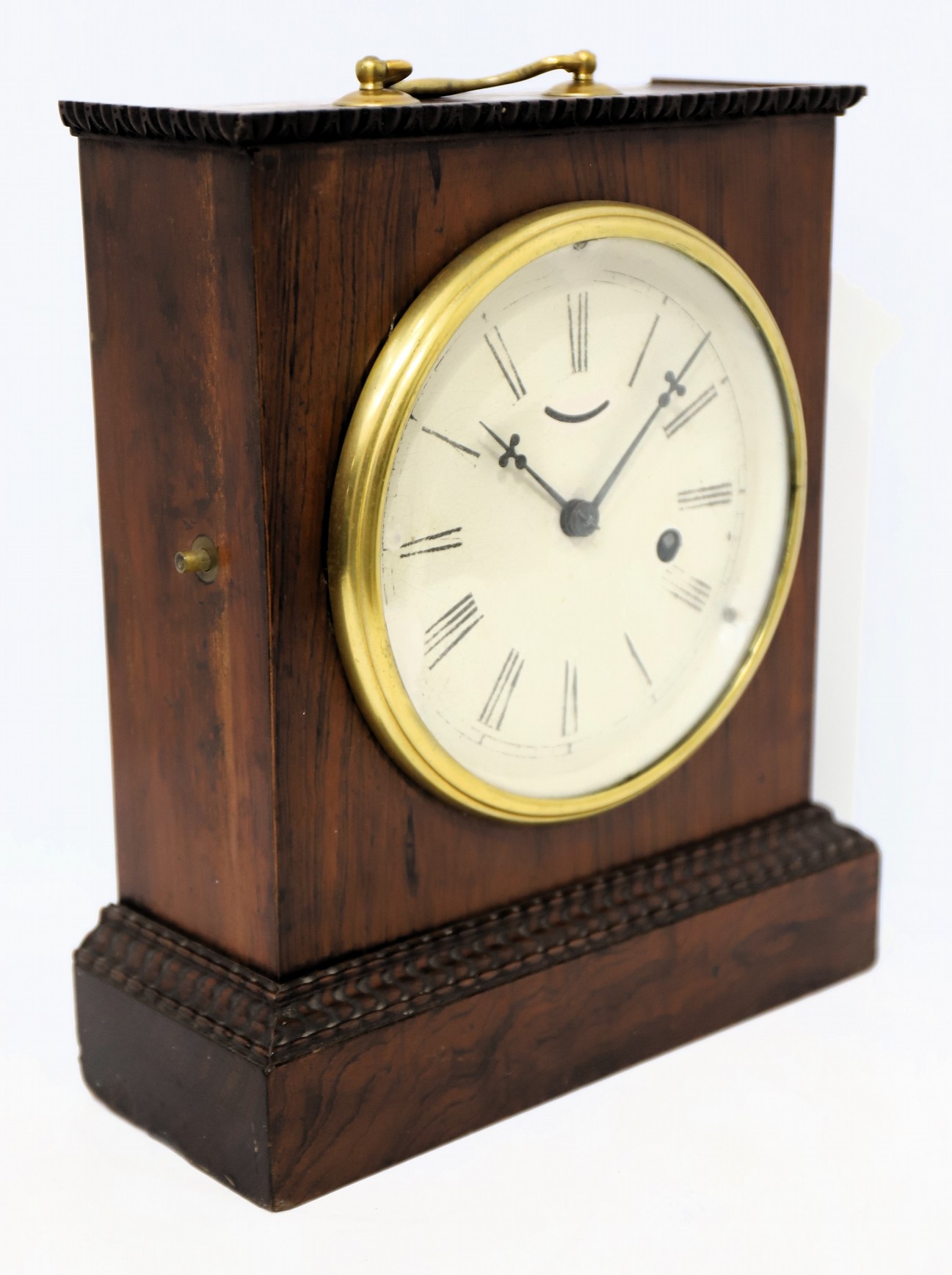 1842-1850. An unusual clock from these makers, the only example I can find. The 11-inch-tall rosewood case has a clean