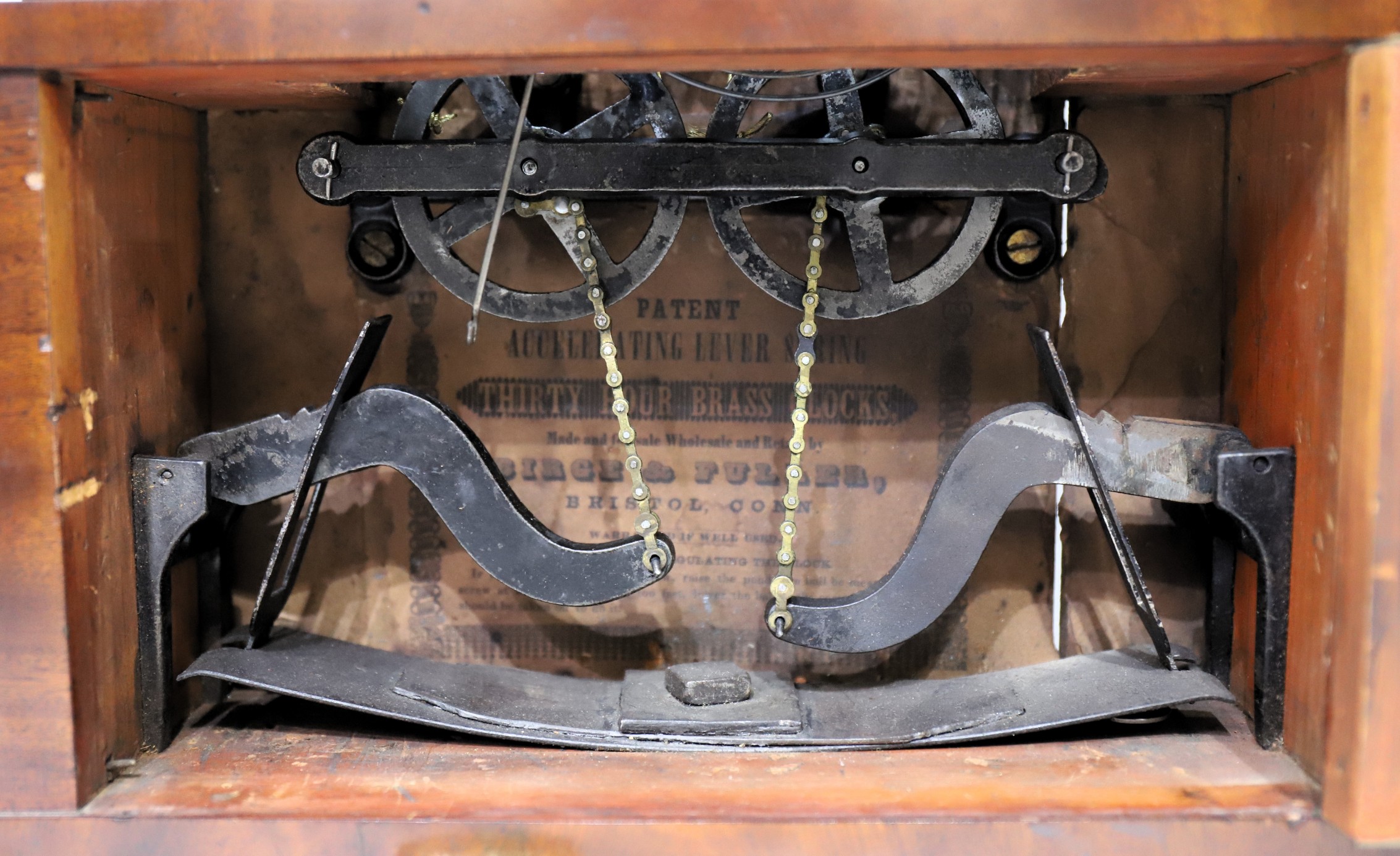 a conventional 30-hour time-and-strike movement that is signed by Chauncey Boardman. Nonetheless, it appears that this movement