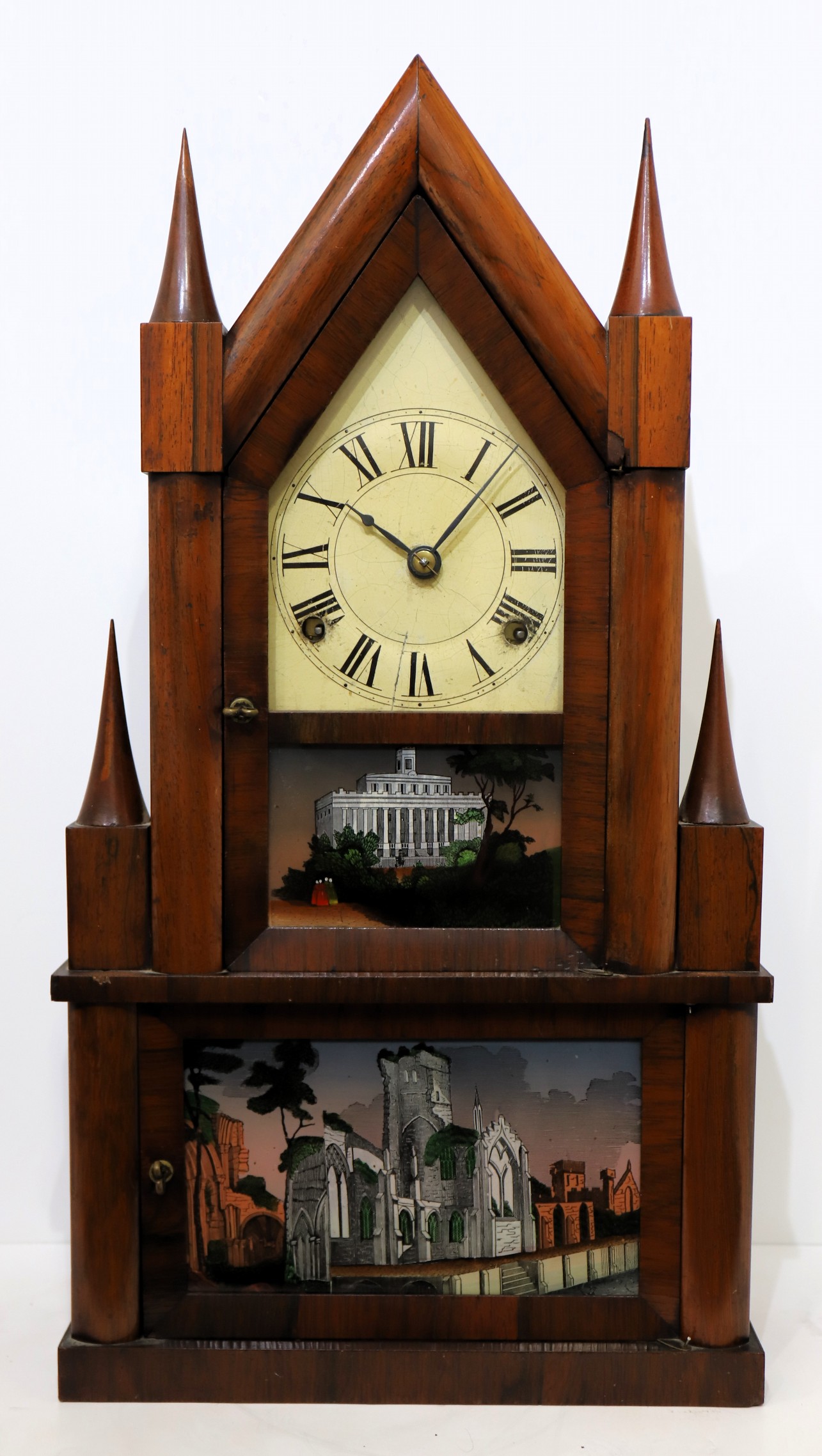 A second beautiful example of a Manross double-steeple, again with rosewood veneer on the front (mahogany on the sides) and
