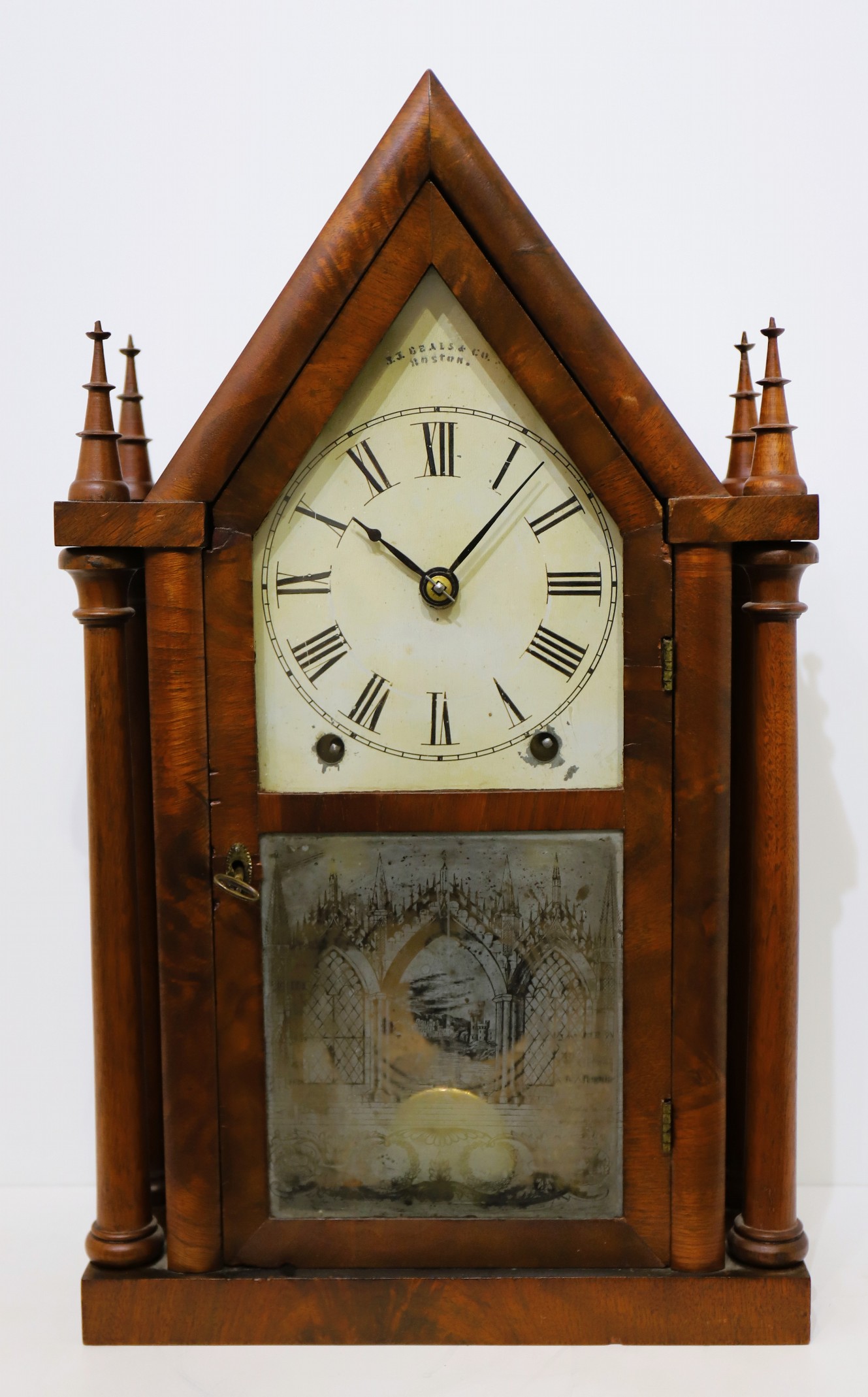 1843-1852. A 19-inch case with burl mahogany veneer on the front and mahogany veneer on the sides; there are four side