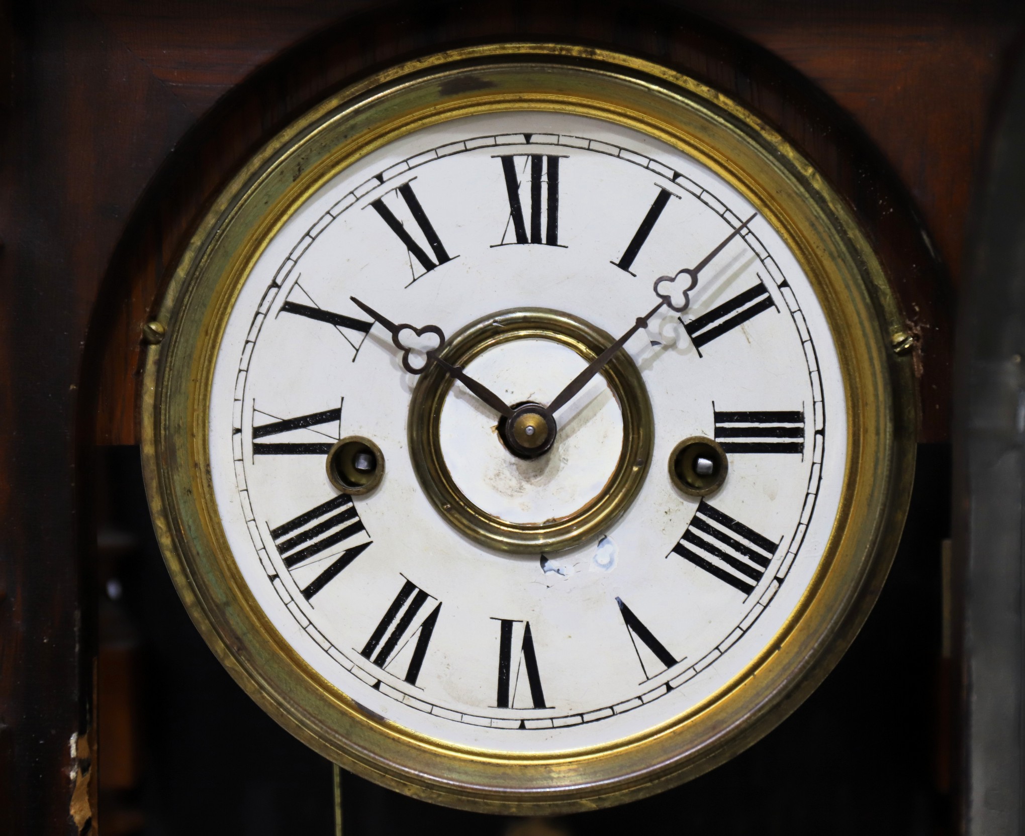 painted dial has some chipping and touch-up, with proper Patti hands. The 8-day, time-and-strike Patti movement is running
