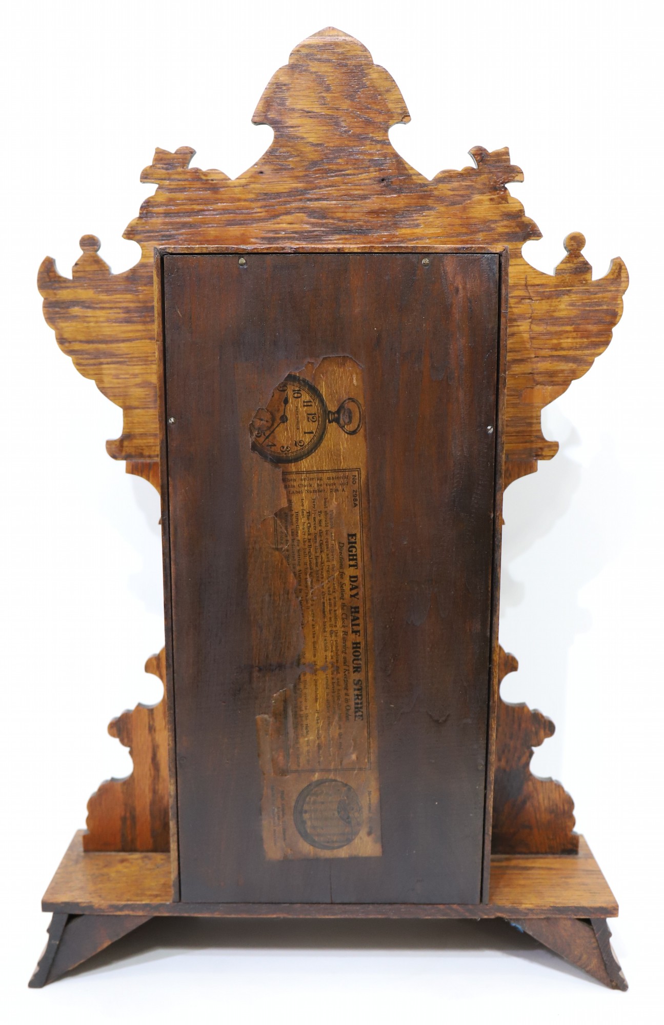 in “old oak” only. The image on this example is well-preserved; note the opening at the bottom to view the pendulum. These