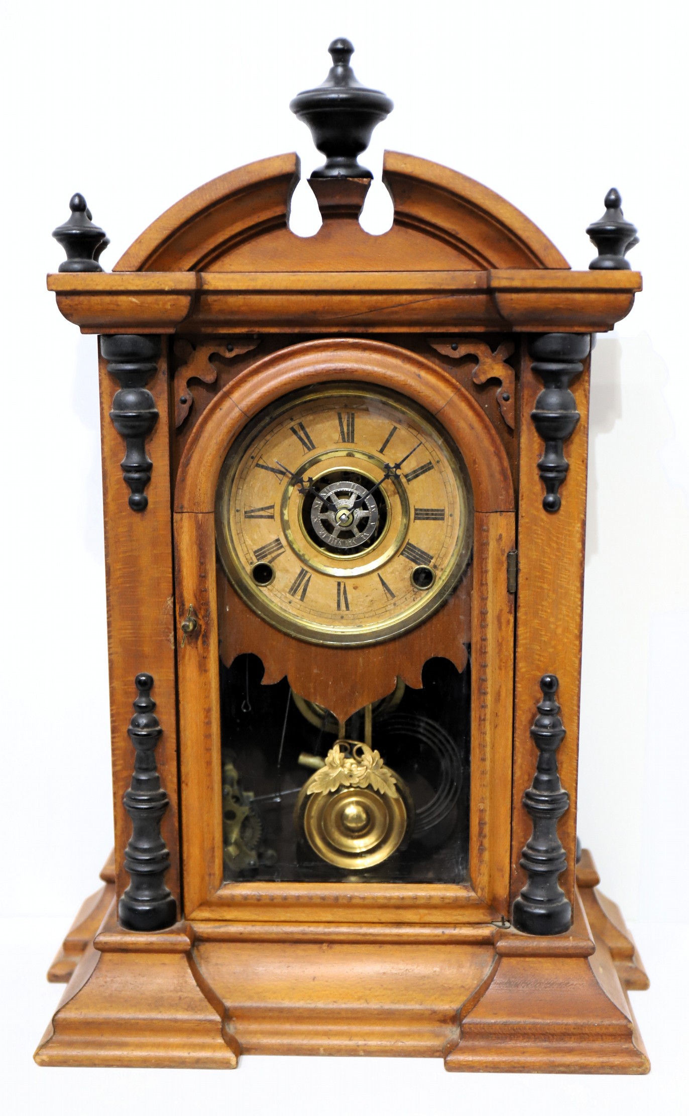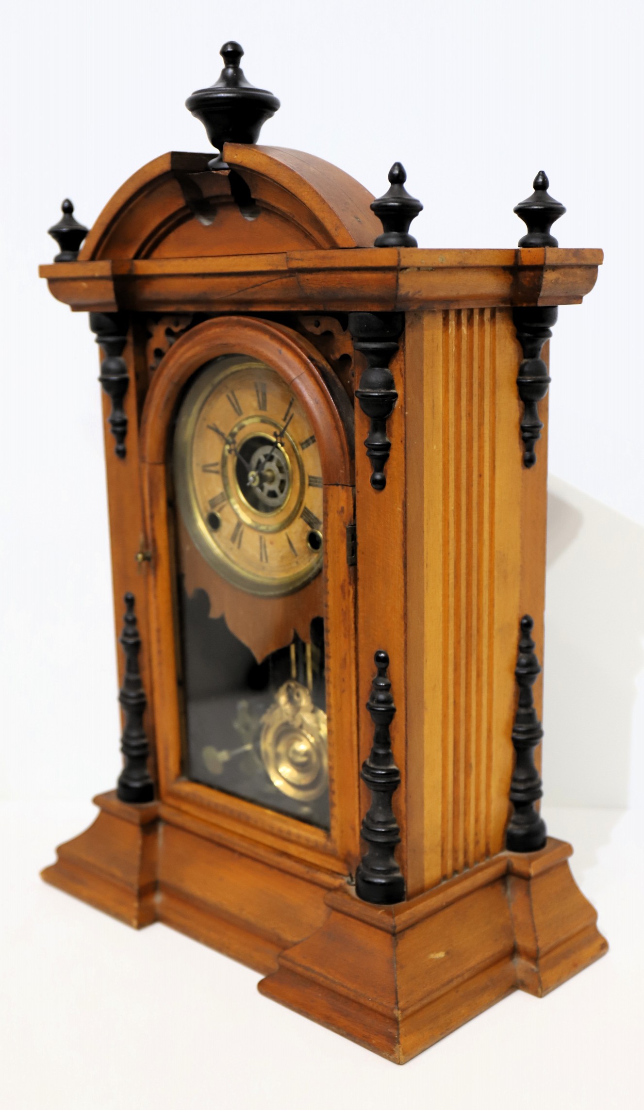 model from Ingraham. Here the case is “Light Wood, Black Trimmings, Polished”. The finish is clean but in need of polish