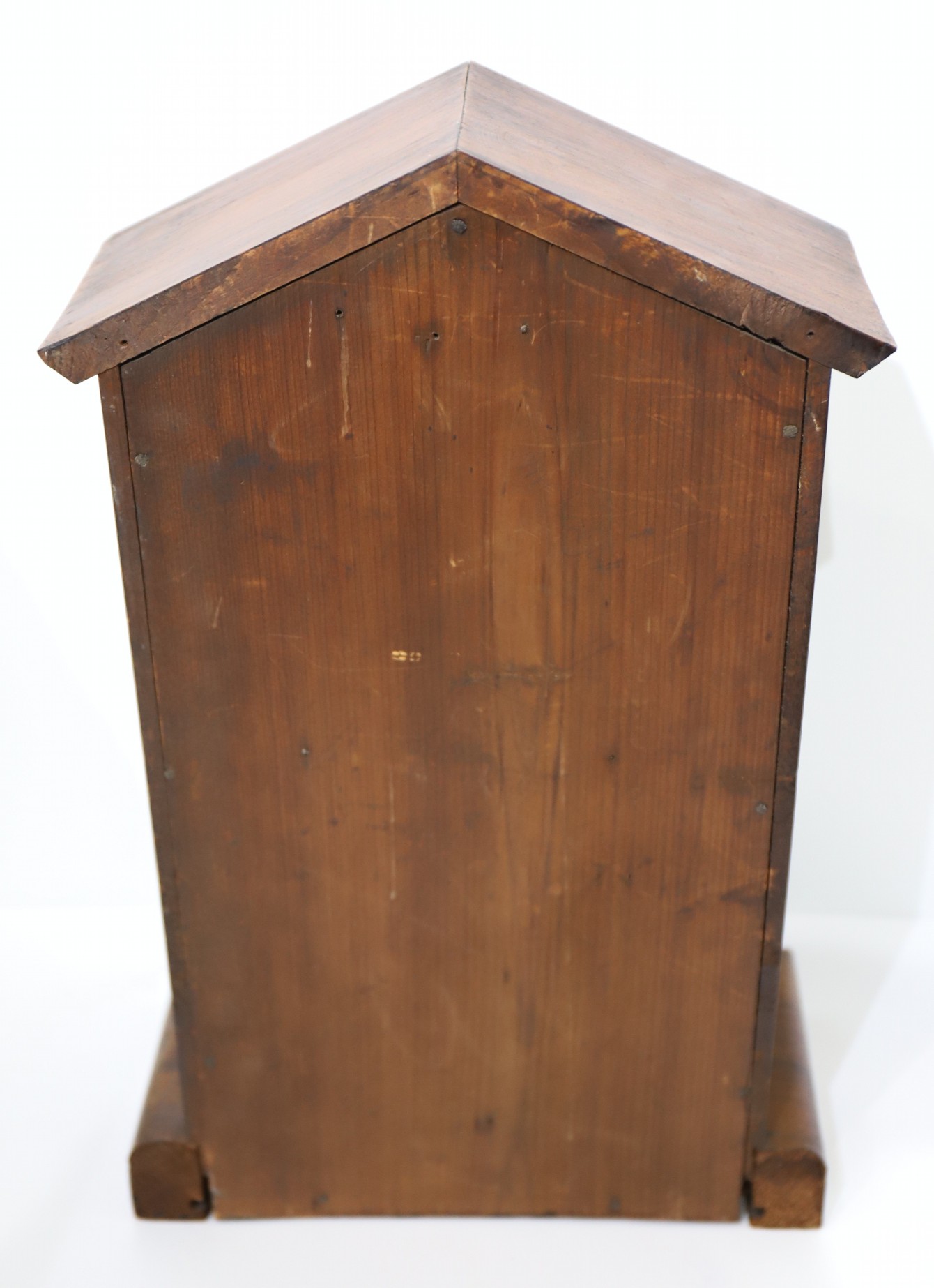flaking and unsigned. The hands are atypical, consistent with a European origin for the movement. The brass 8-day, time-and-strike