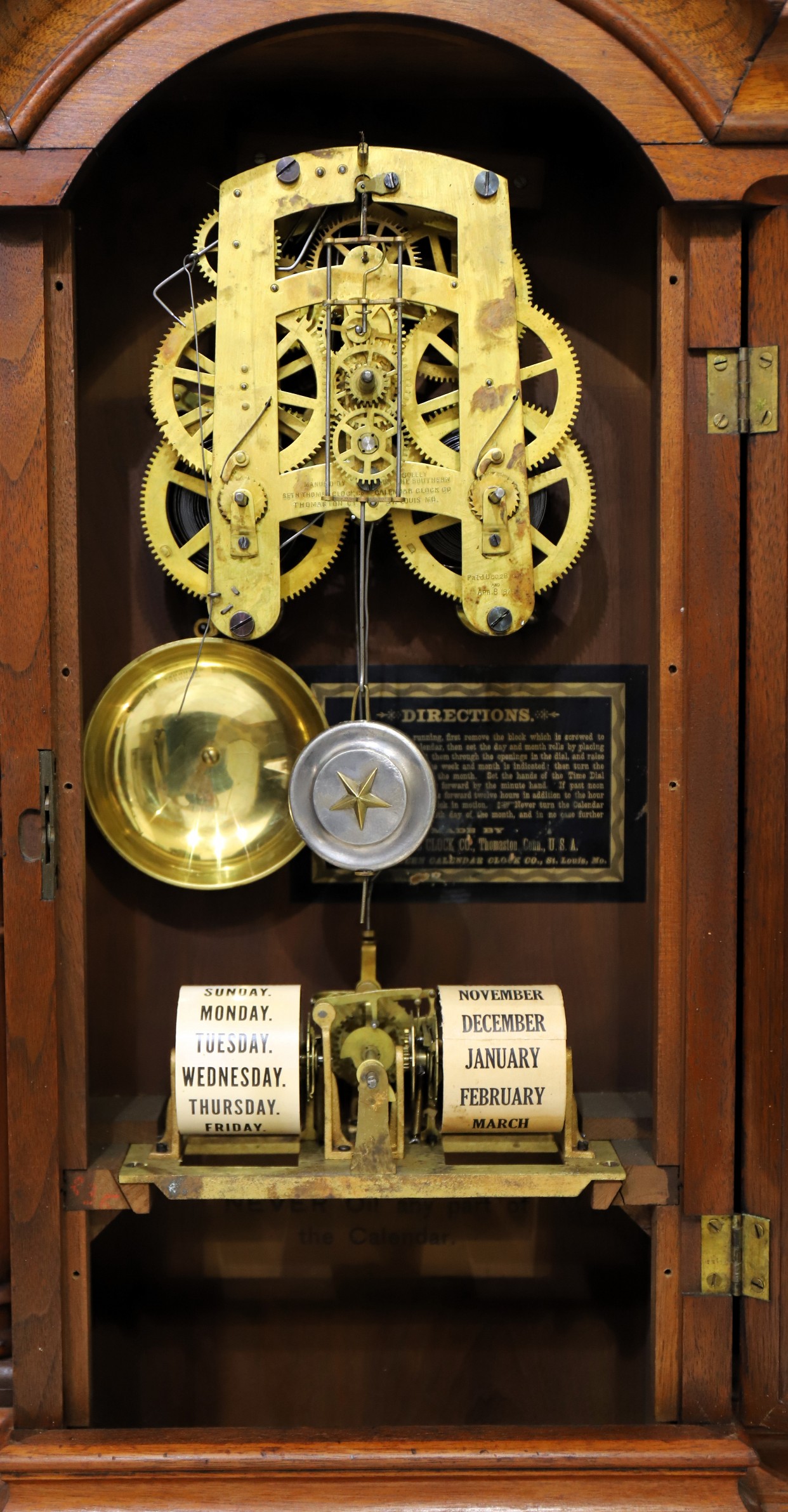 time hands are replacements used by Seth Thomas on later models, and the seconds bit is also an improper replacement; the calendar