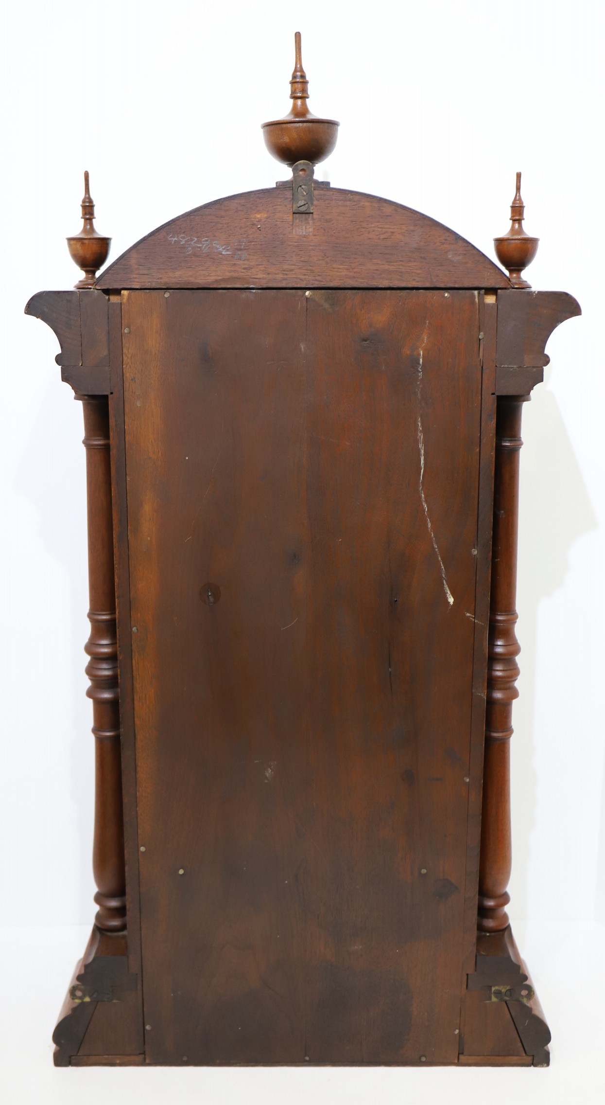 The walnut case is 32 inches tall with a clean finish; the door glass is old, the lettering complete and proper. Both dials