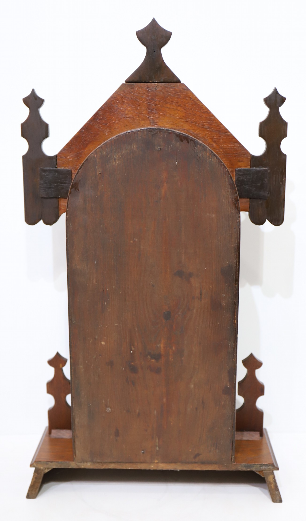 see the modifications to the crest, as their color differs from the rest of the case. It stands 22 inches tall in walnut with