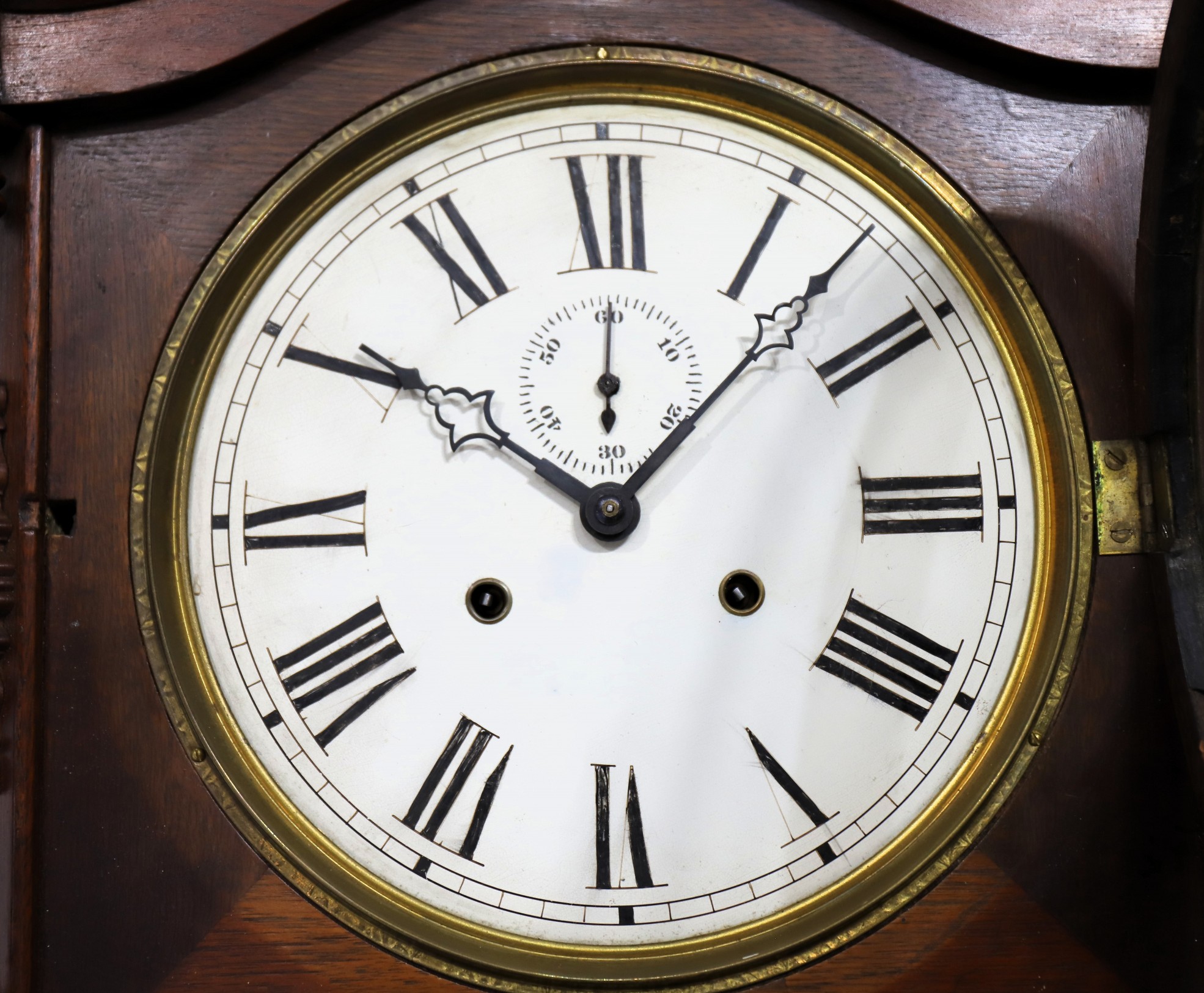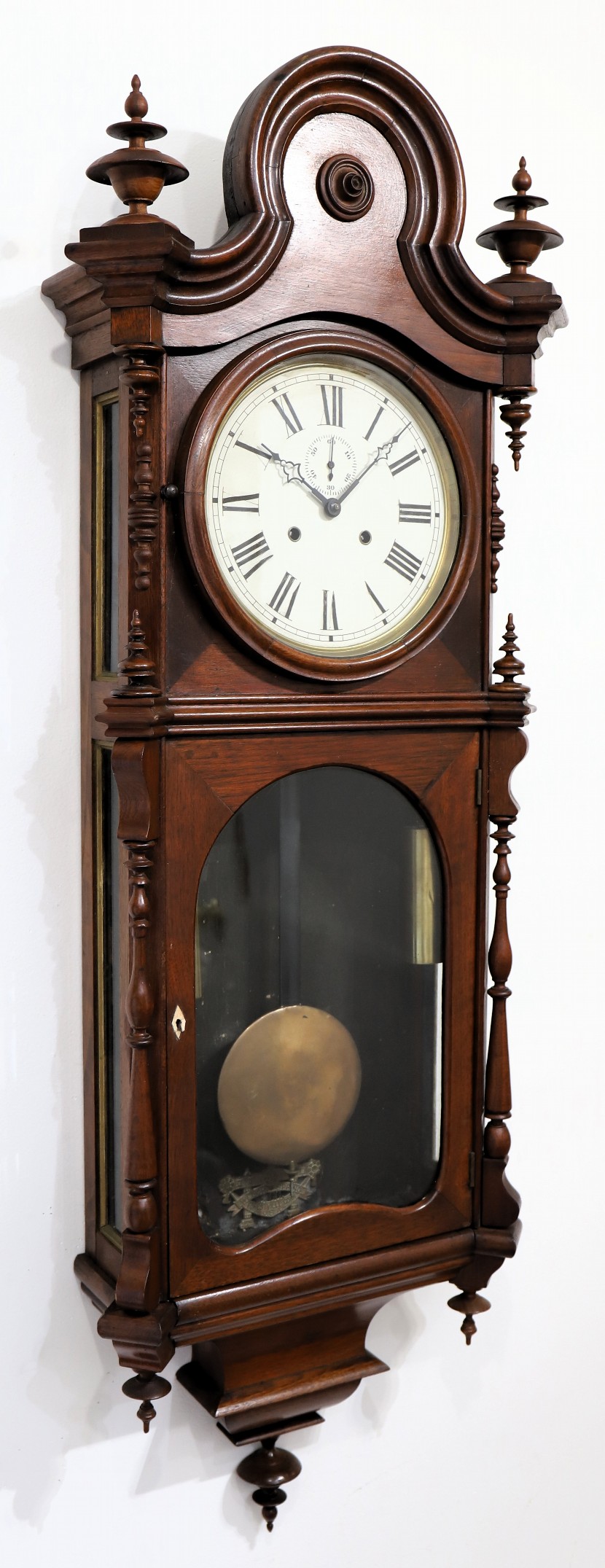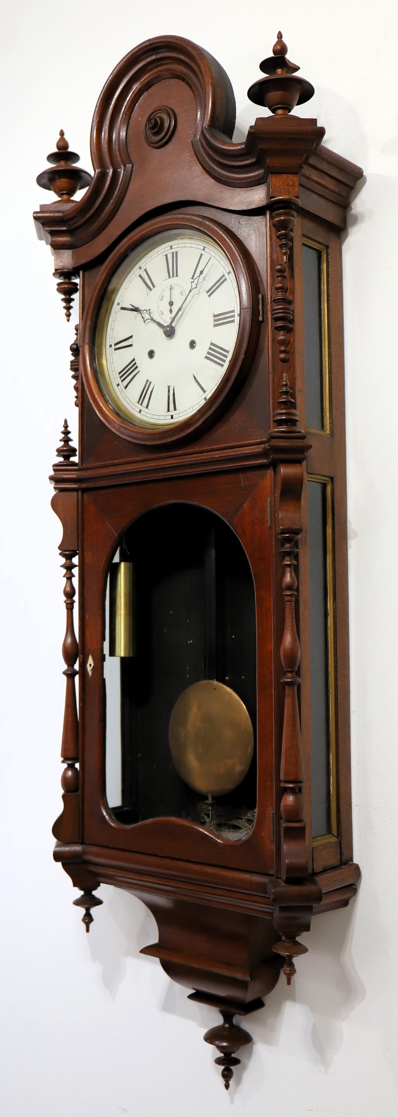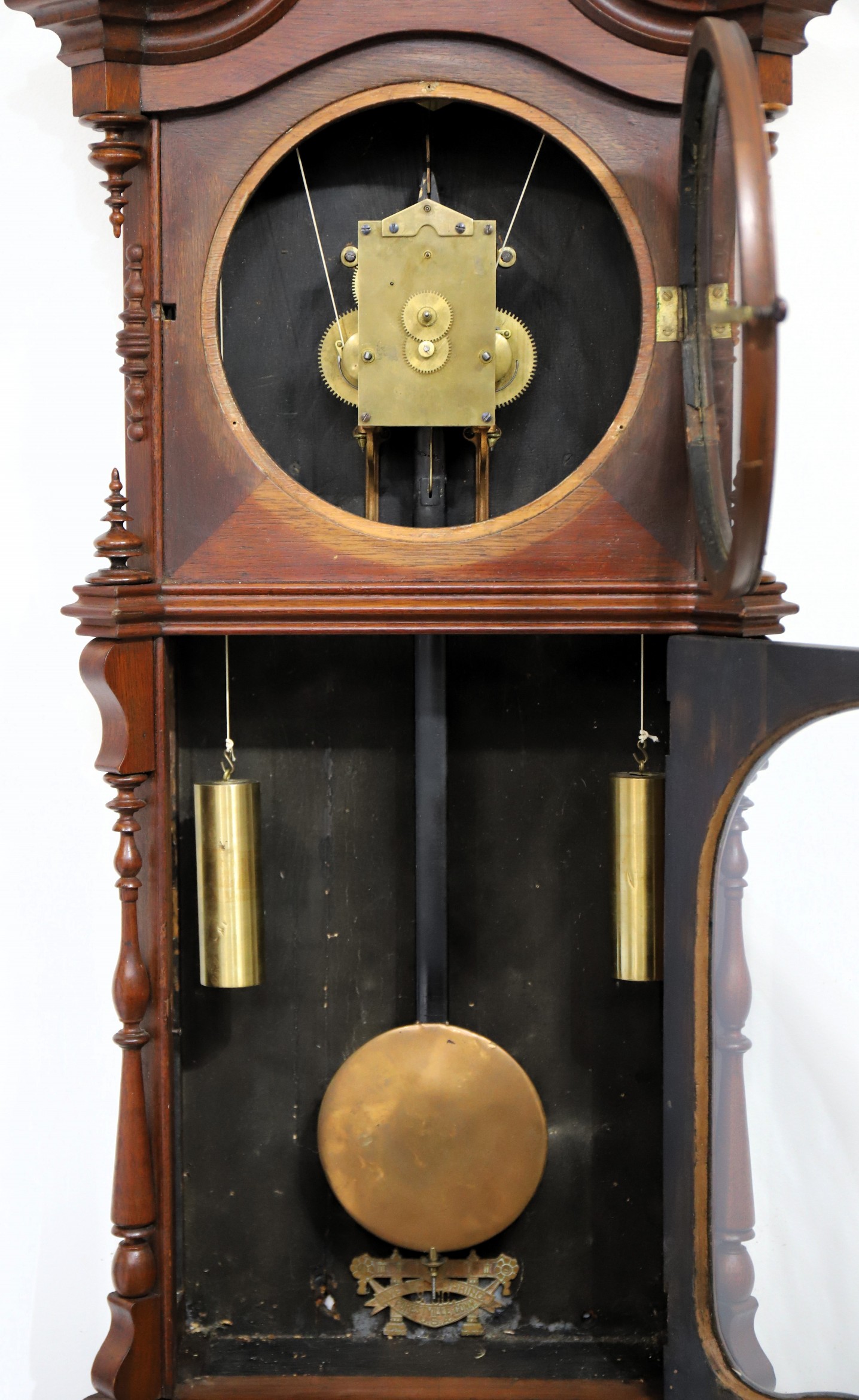 of Welch’s most desirable clocks, a 52-inch, two-weight, time-only regulator. The case is walnut with an old finish and umpteen