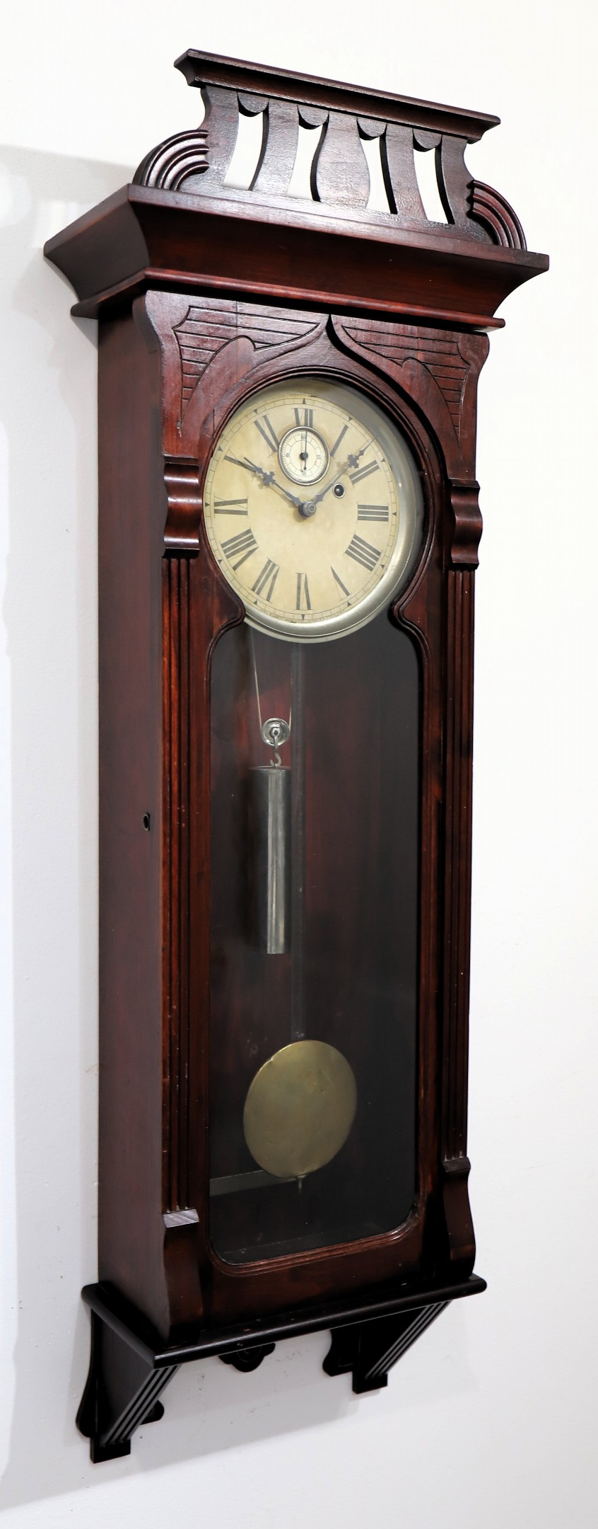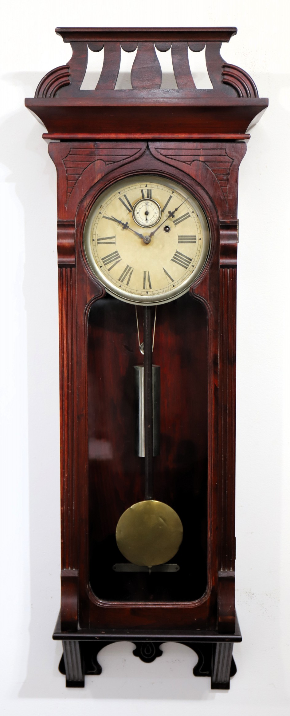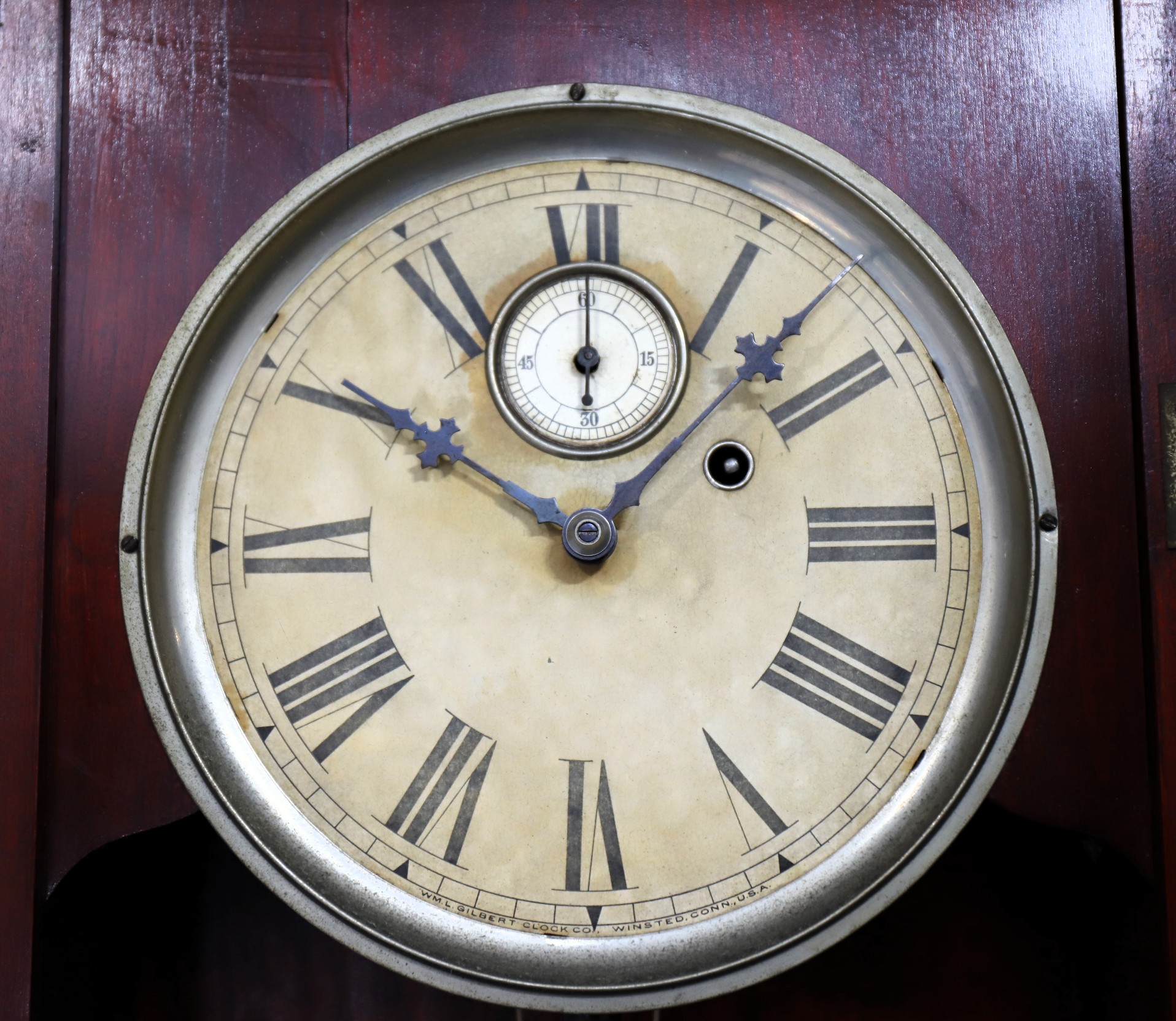 Wm. L. Gilbert Clock Co. “Regulator No. 64”, ca. 1910. This is a difficult model to find – there are no listings on LiveAuctioneers, the Antique Clocks Identification and Price Guide, or