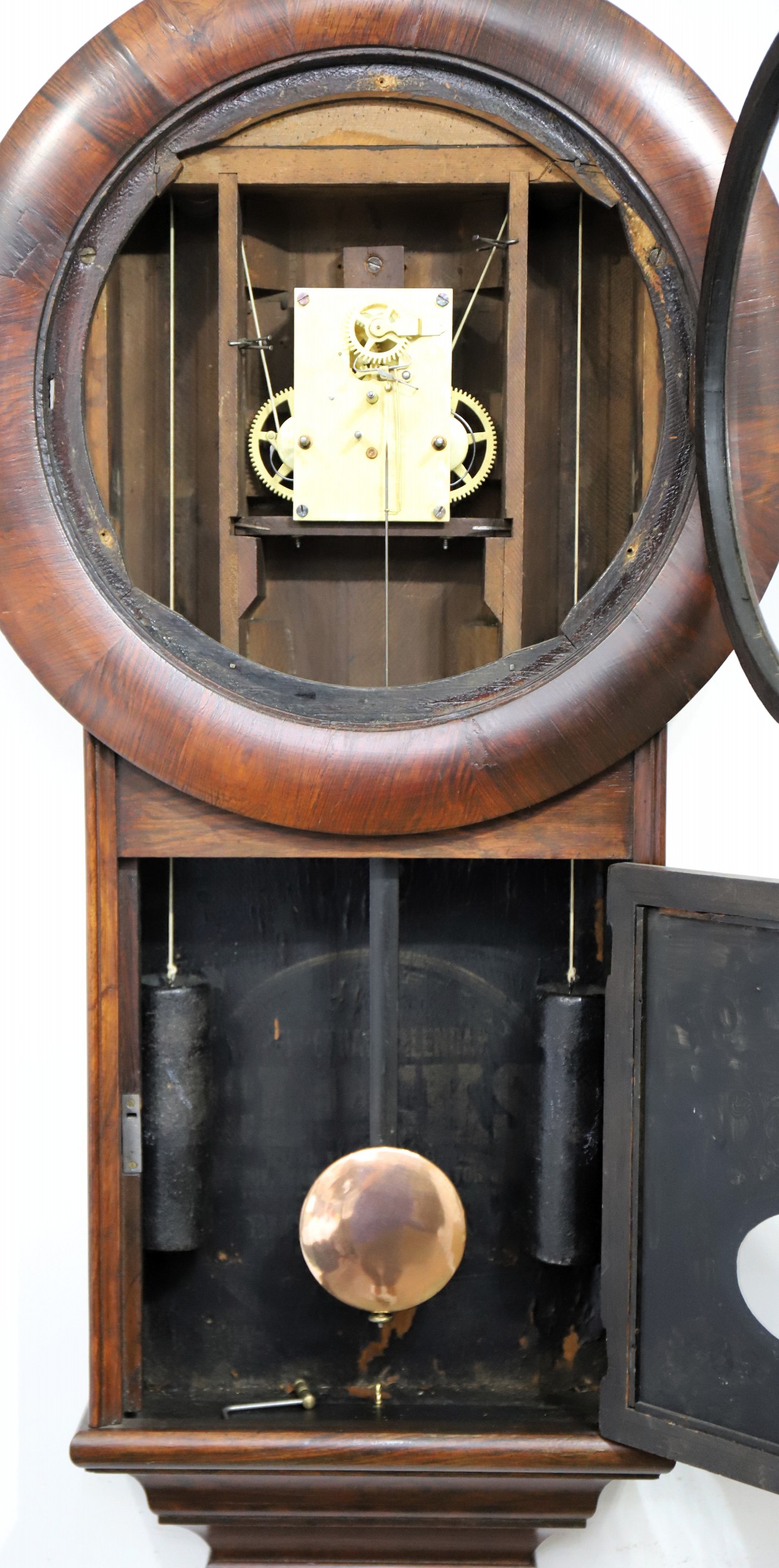 weight-driven regulator, time-only, 8 days with two weights. The 34-inch case is in rosewood veneer in good condition,