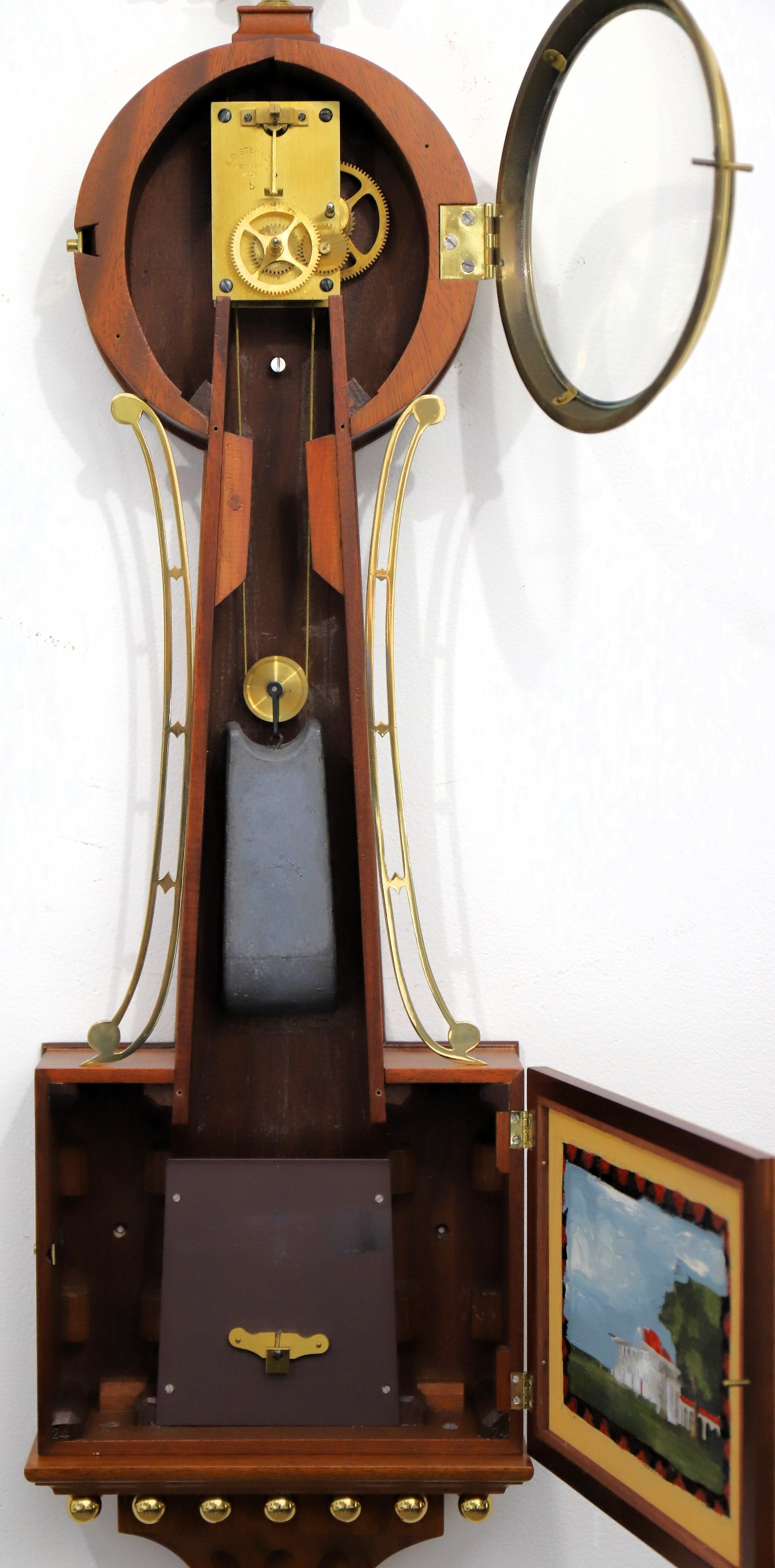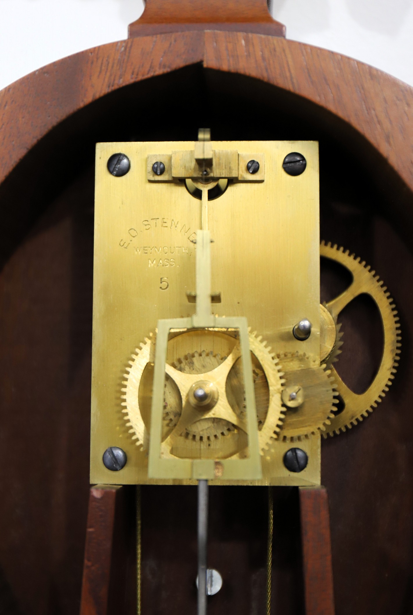 E O Stennes, Weymouth, MA. There is a lead weight and a pendulum tie-down. A great example. Stennes banjo prices