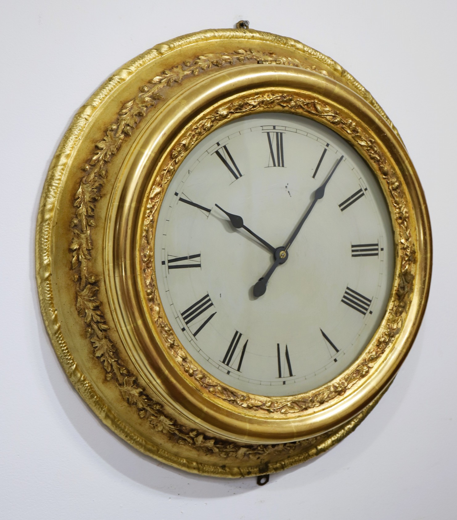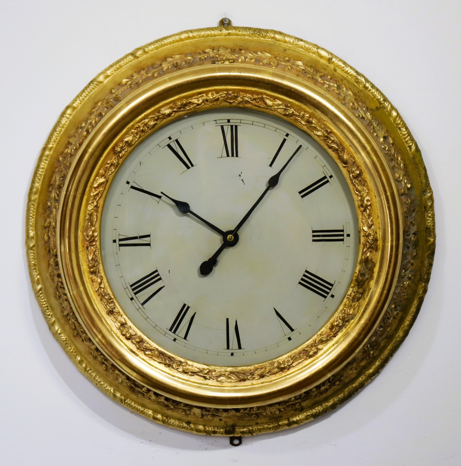 Chauncey Jerome (attr.) gilt gallery clock, ca. 1852. A 26-inch diameter