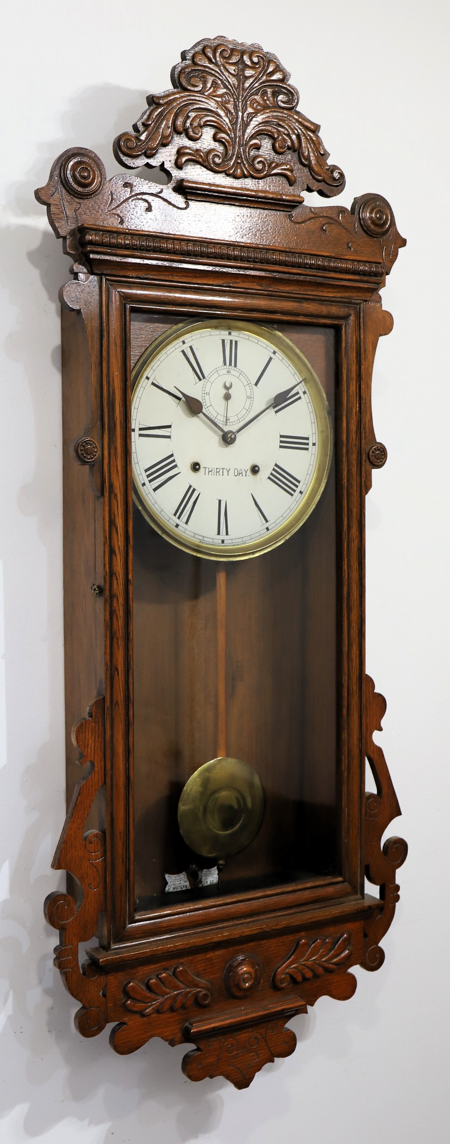 & Watches, page 202). The 30-day spring-driven, double-wind movement is signed and running, regulated by a Waterbury pendulum