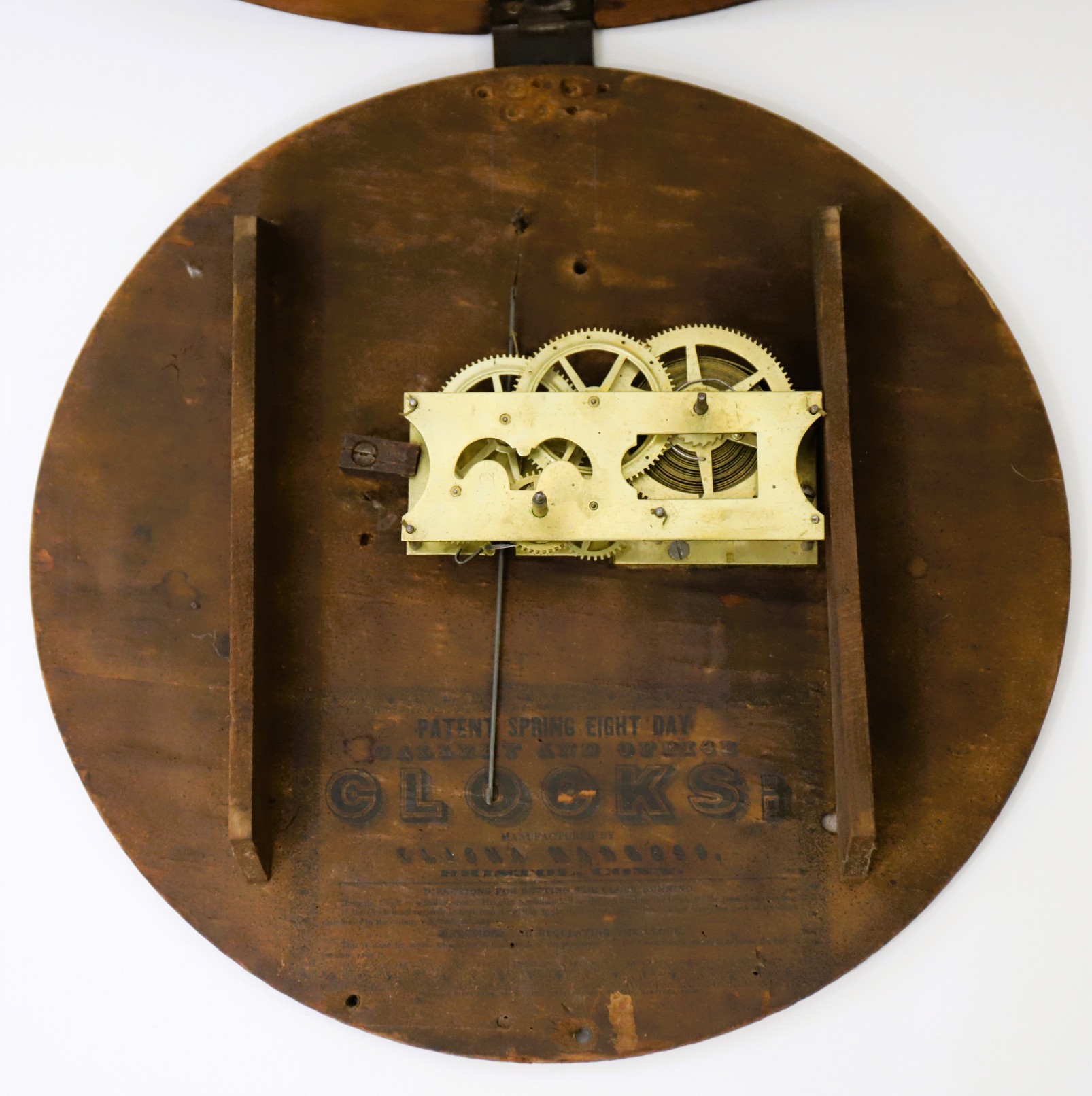 clock from Elisha Manross in outstanding condition. The mahogany case is 19 inches in diameter with a great finish. There