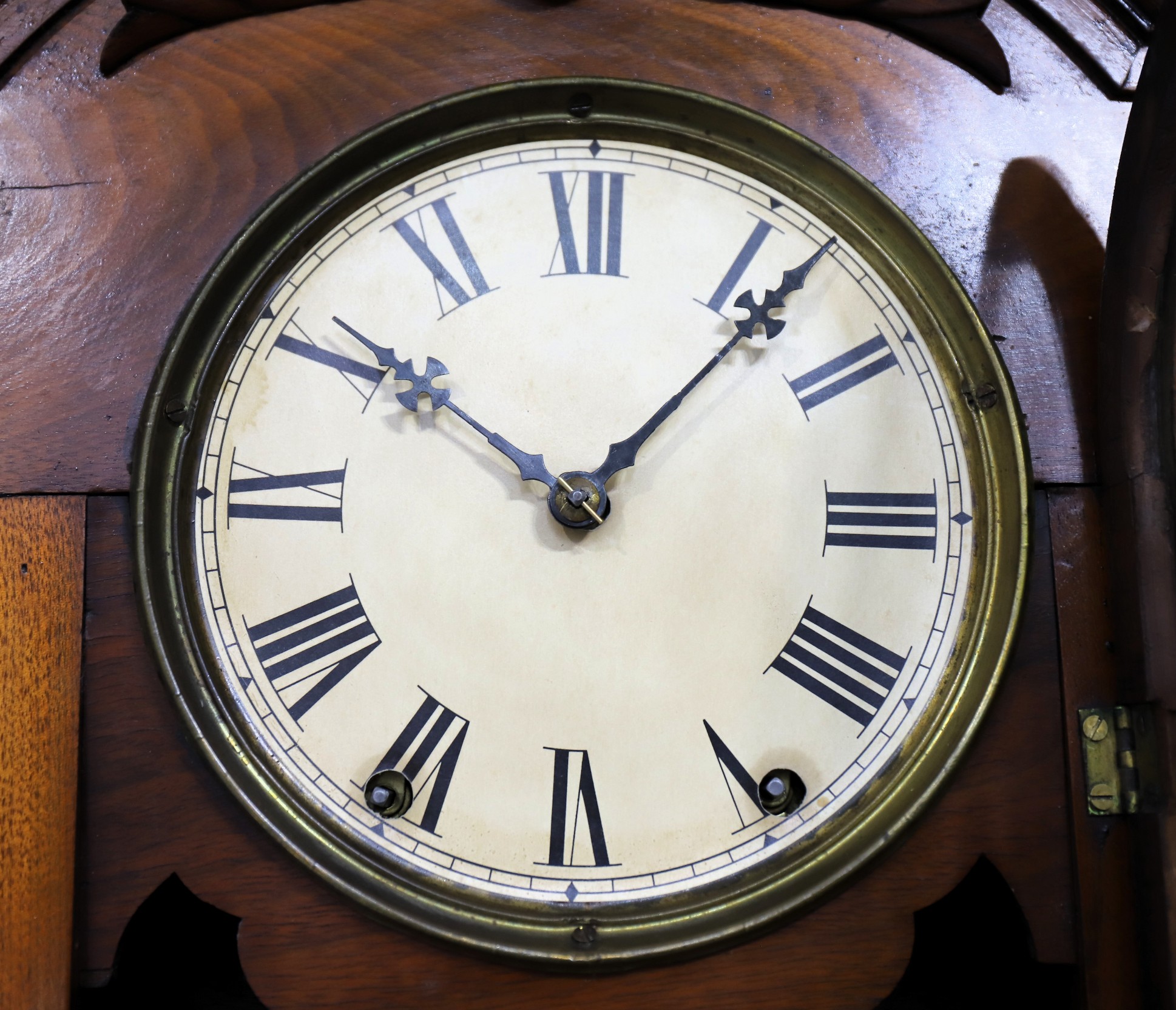 with the original putty. The dial is toned paper, the hands period. The signed Seth Thomas 8-day, time-and-strike movement