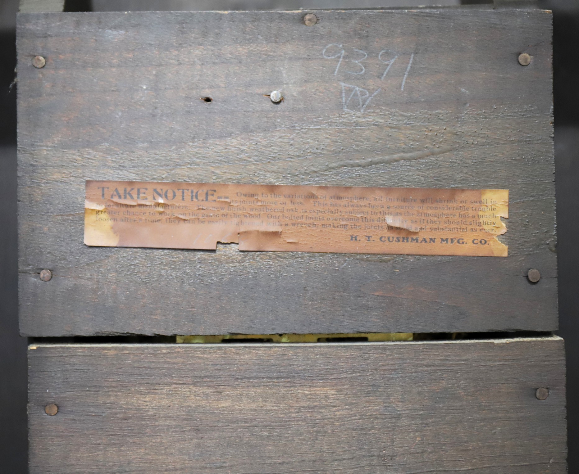 appears to be a special order for the H.T. Cushman Mfg. Co., a furniture manufacturer in Bennington, VT. The darkly stained