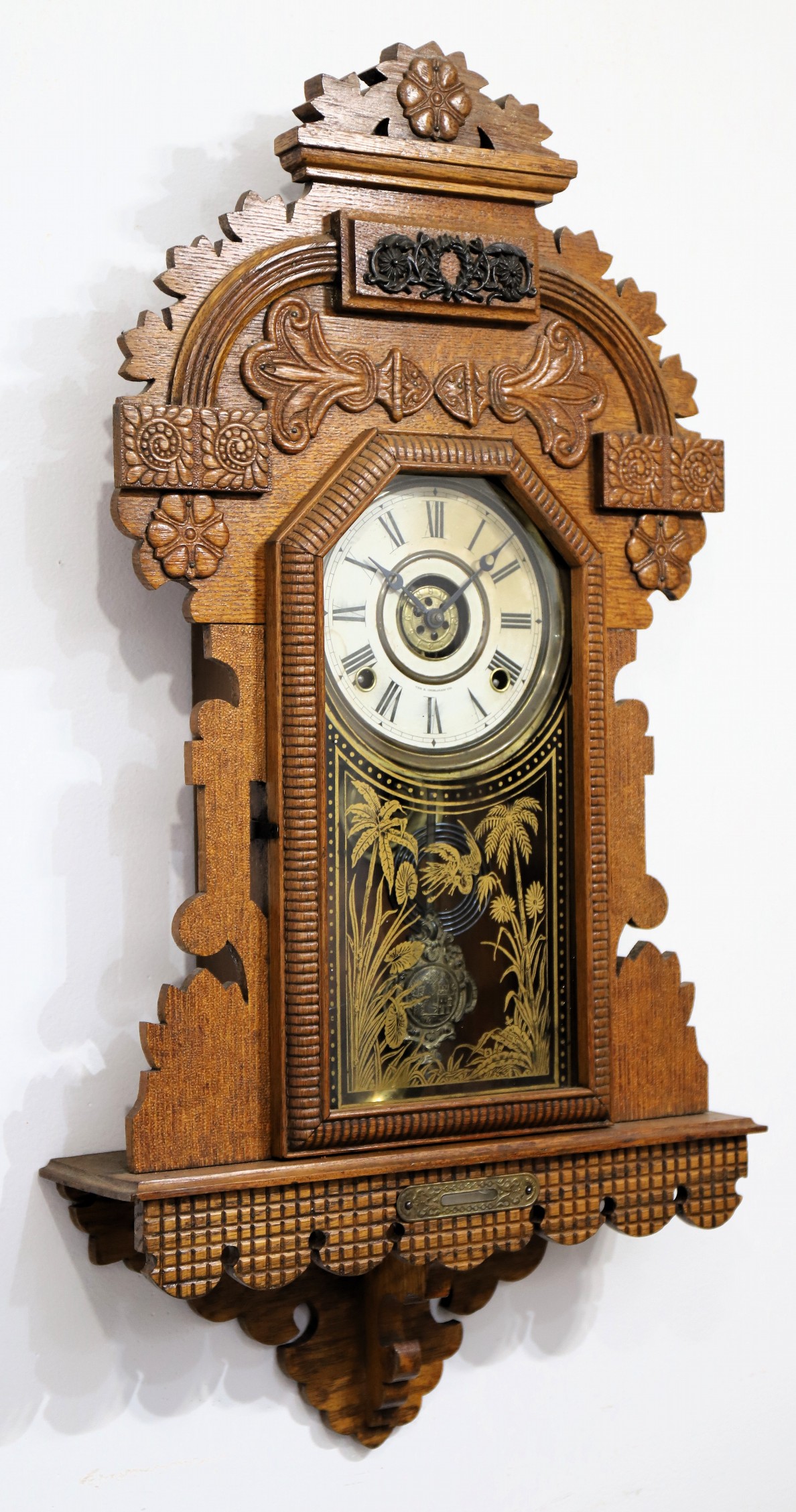 E. Ingraham Co. wall clock, ca. 1891. A 27.5-inch oak case that was
