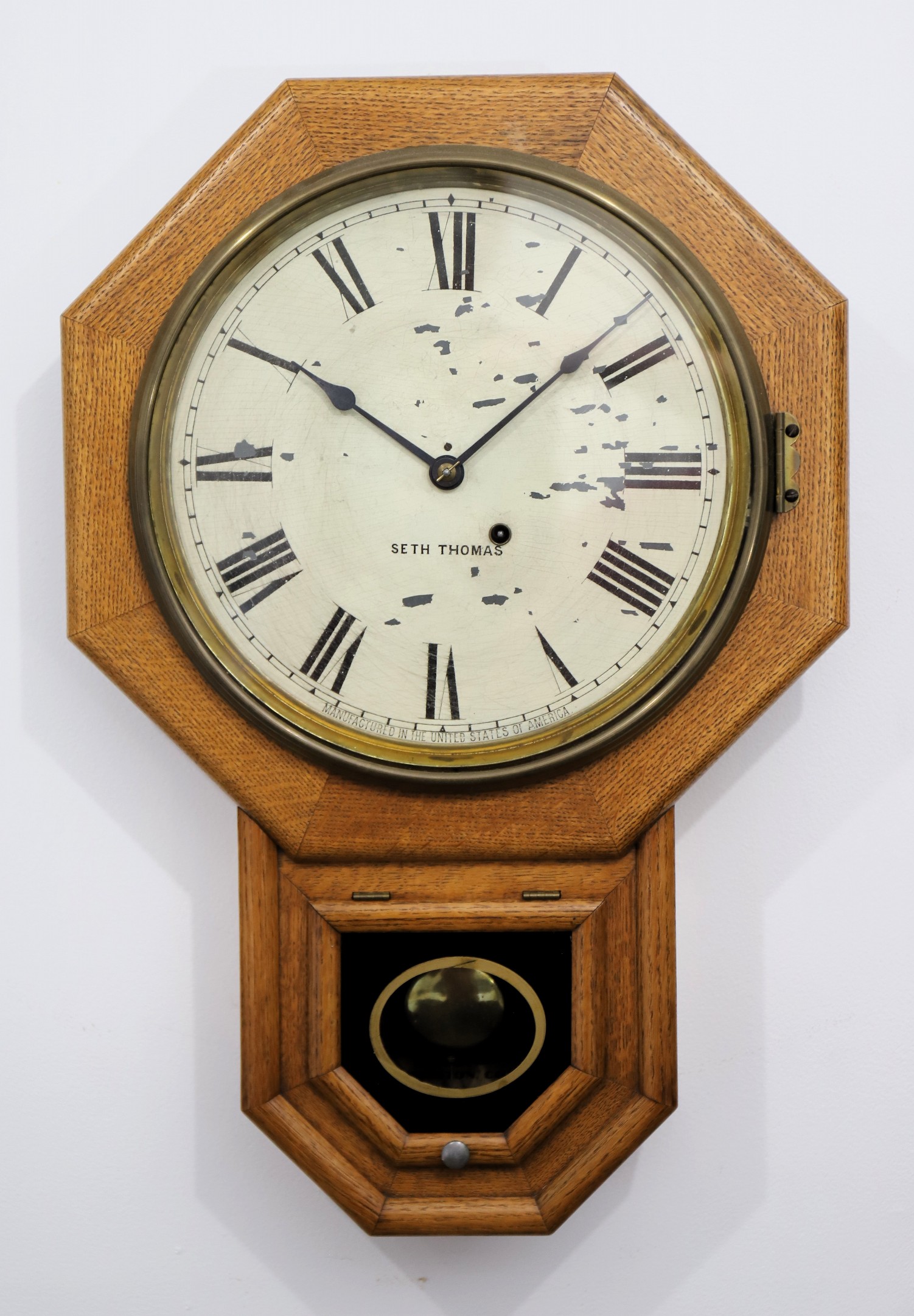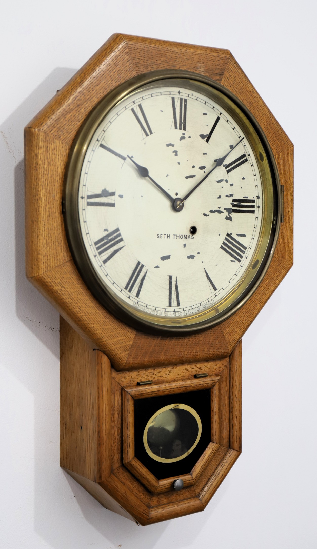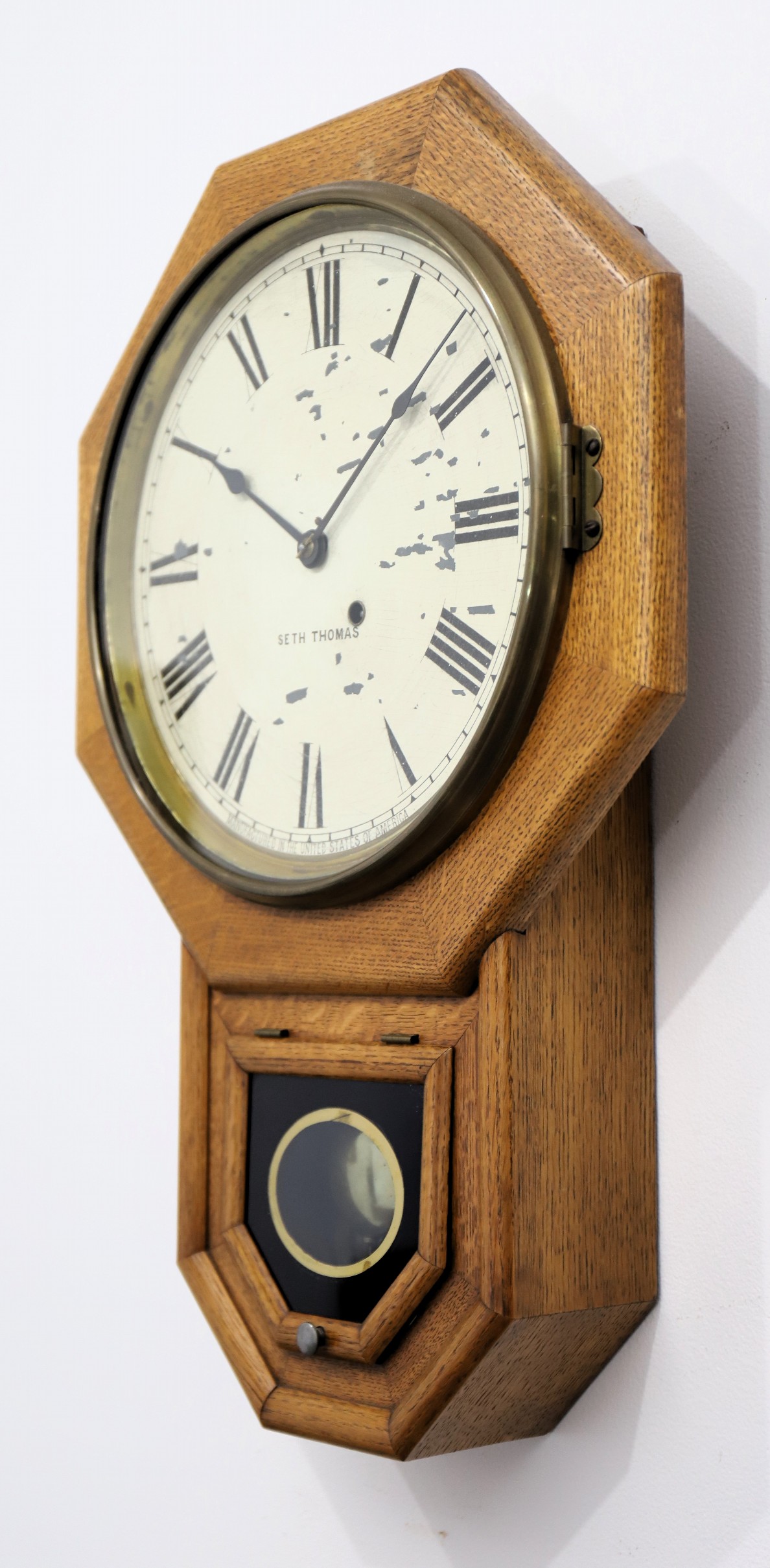 Seth Thomas Clock Co. “Drop Octagon 12 Inch”, 1906. A 24-inch oak case