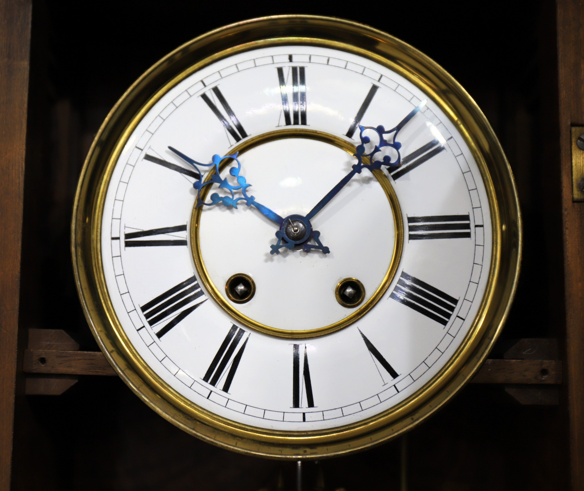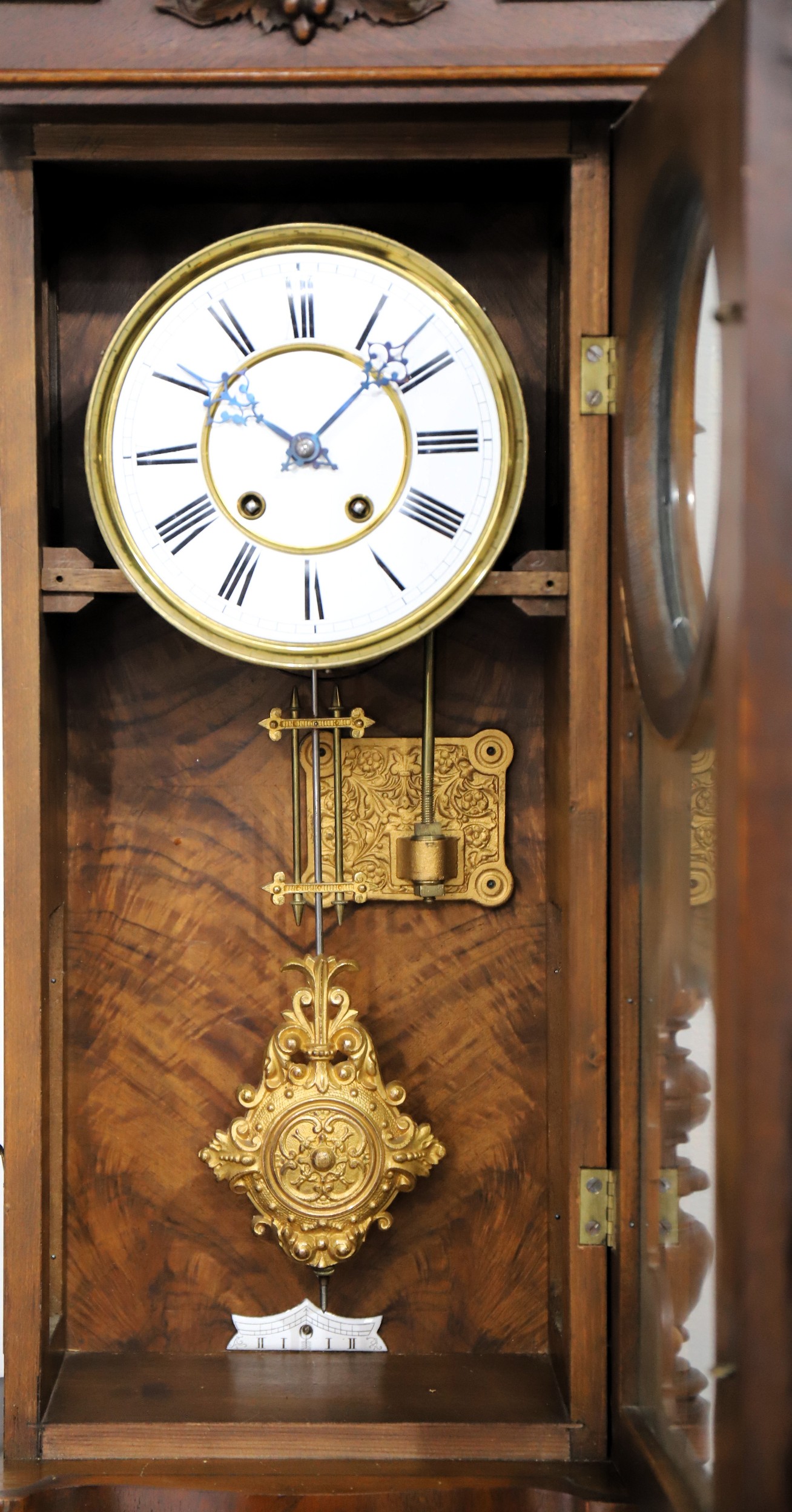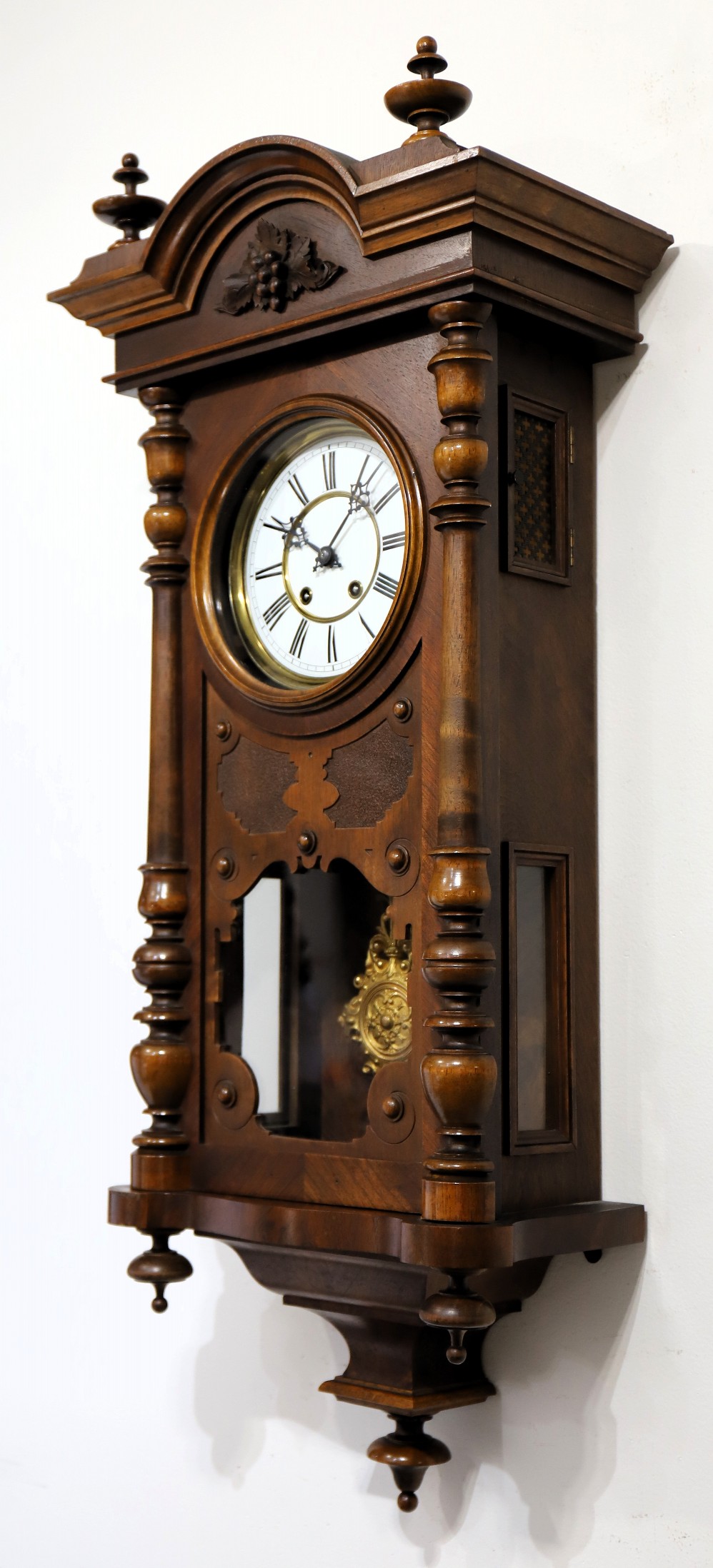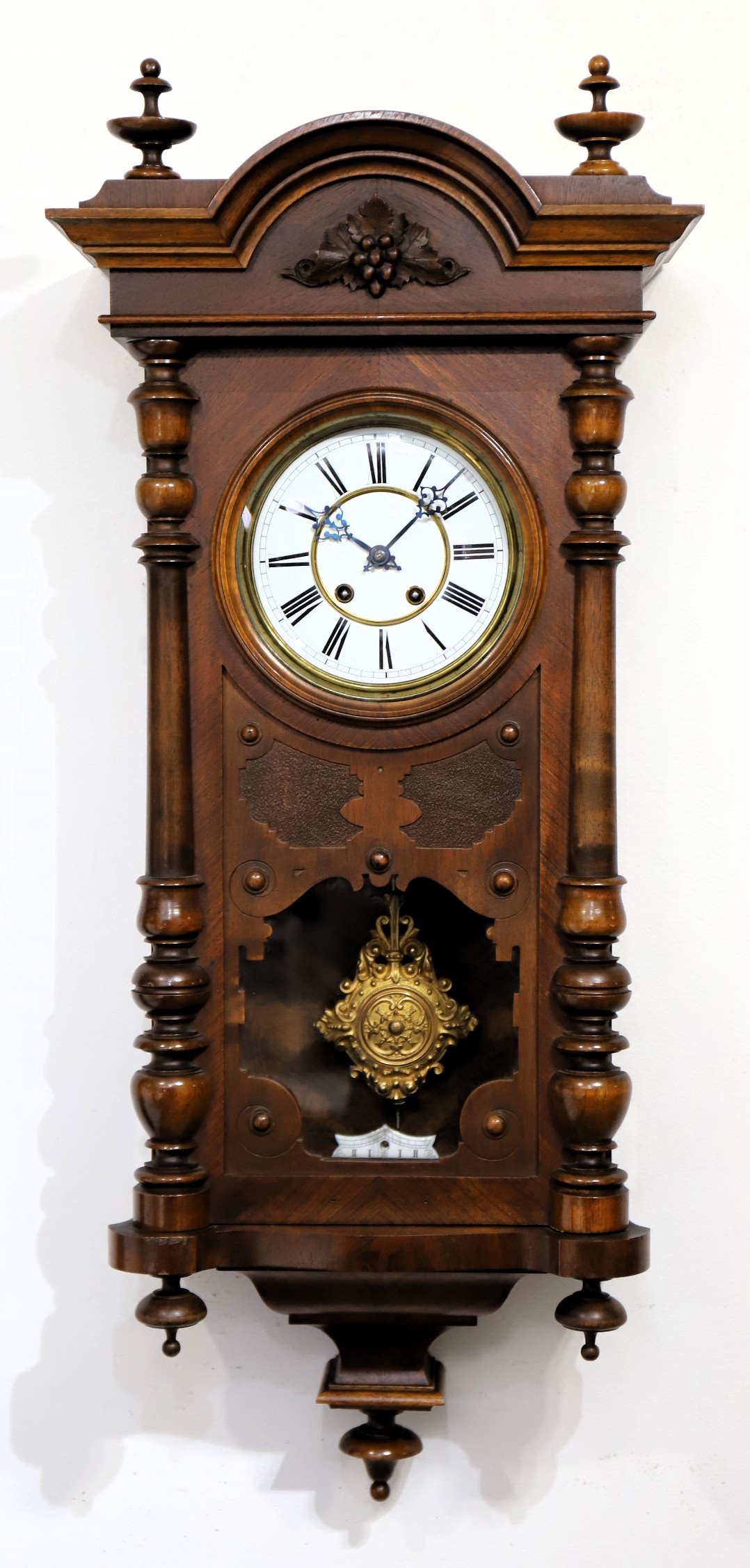 Lenzkirch wall clock, ca. 1892. A 36-inch walnut case with a
