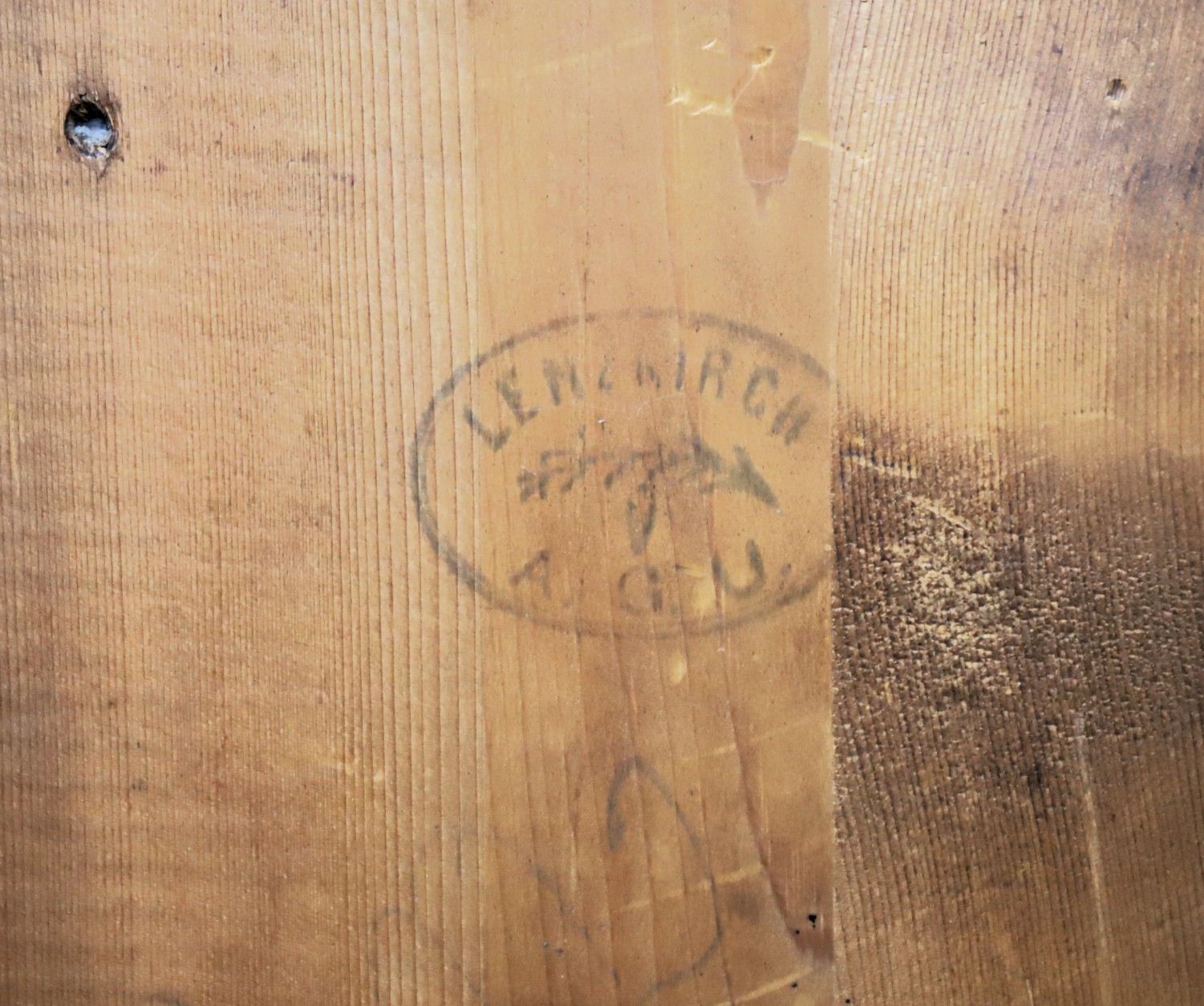 around 1892. A fancy brass pendulum and a maker stamp on the back of the case. Nothing not to like here. A great