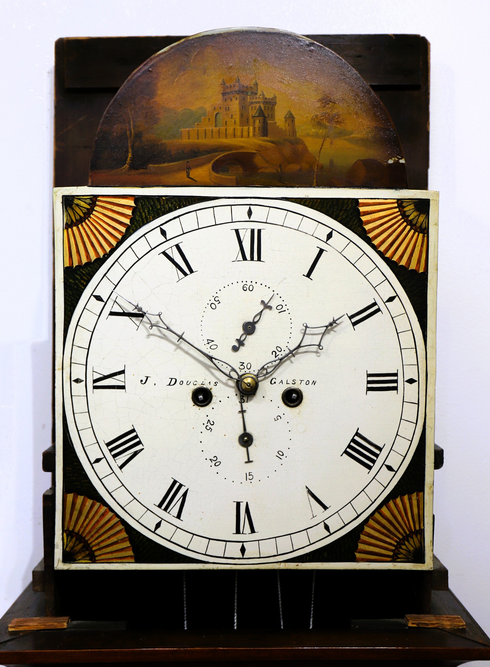 J Douglas of Galston Scotland tall case clock, ca. 1800. John