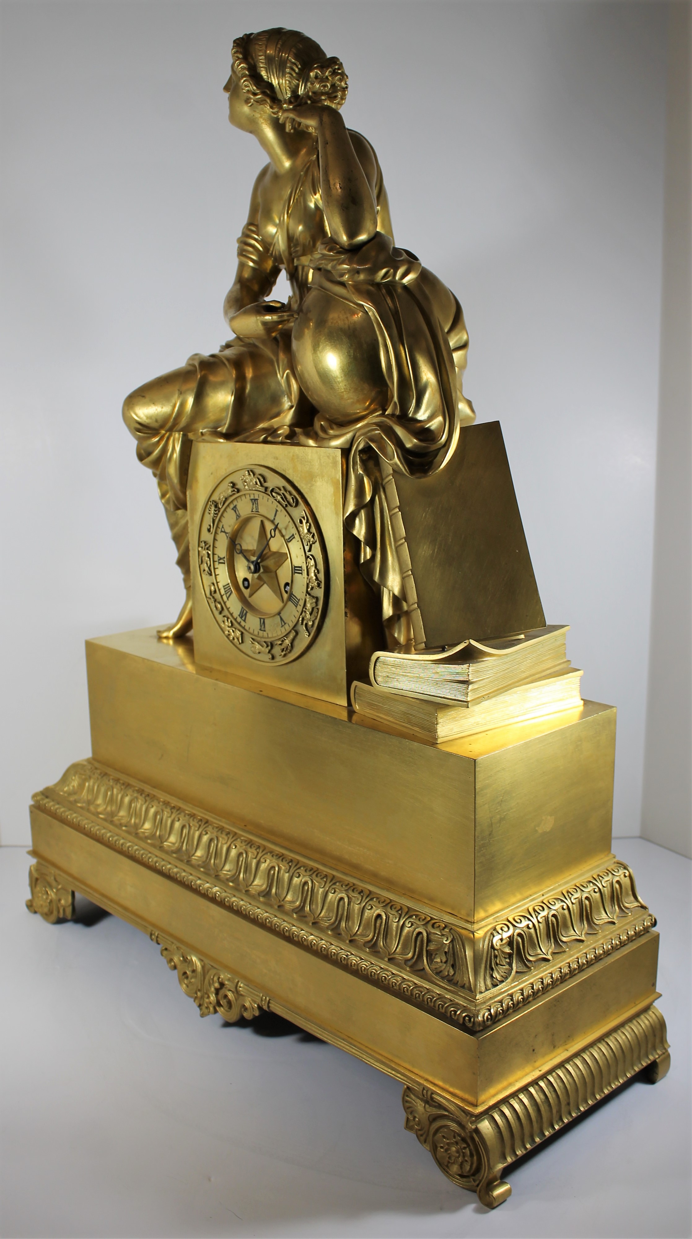 Early French gilded Empire figural, ca. 1850. A large and impressive gilded clock with